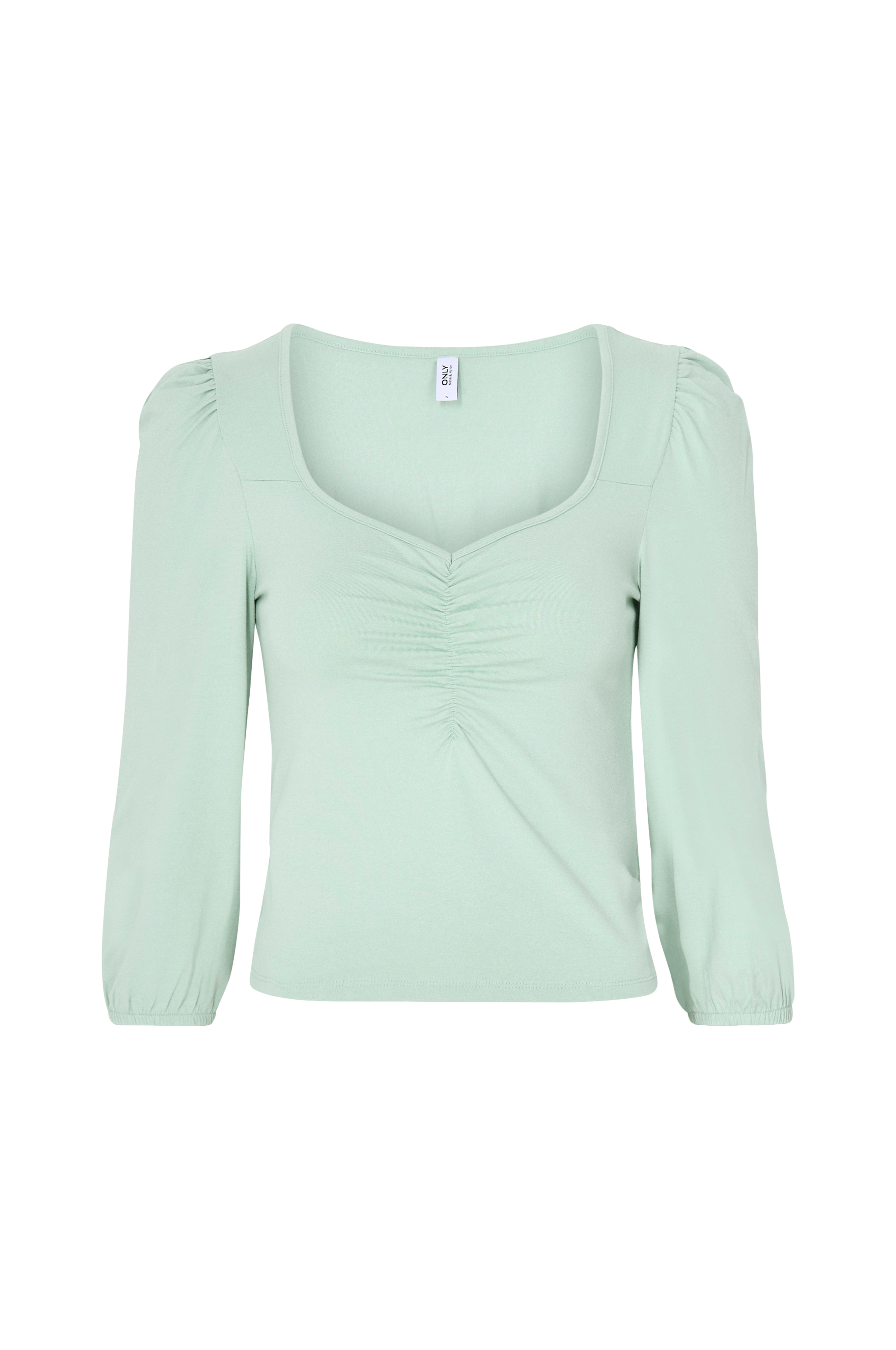 • Kantet halsudskæring med elastisk samling foran• 3/4 lange ballonærmer med elastiske manchetter