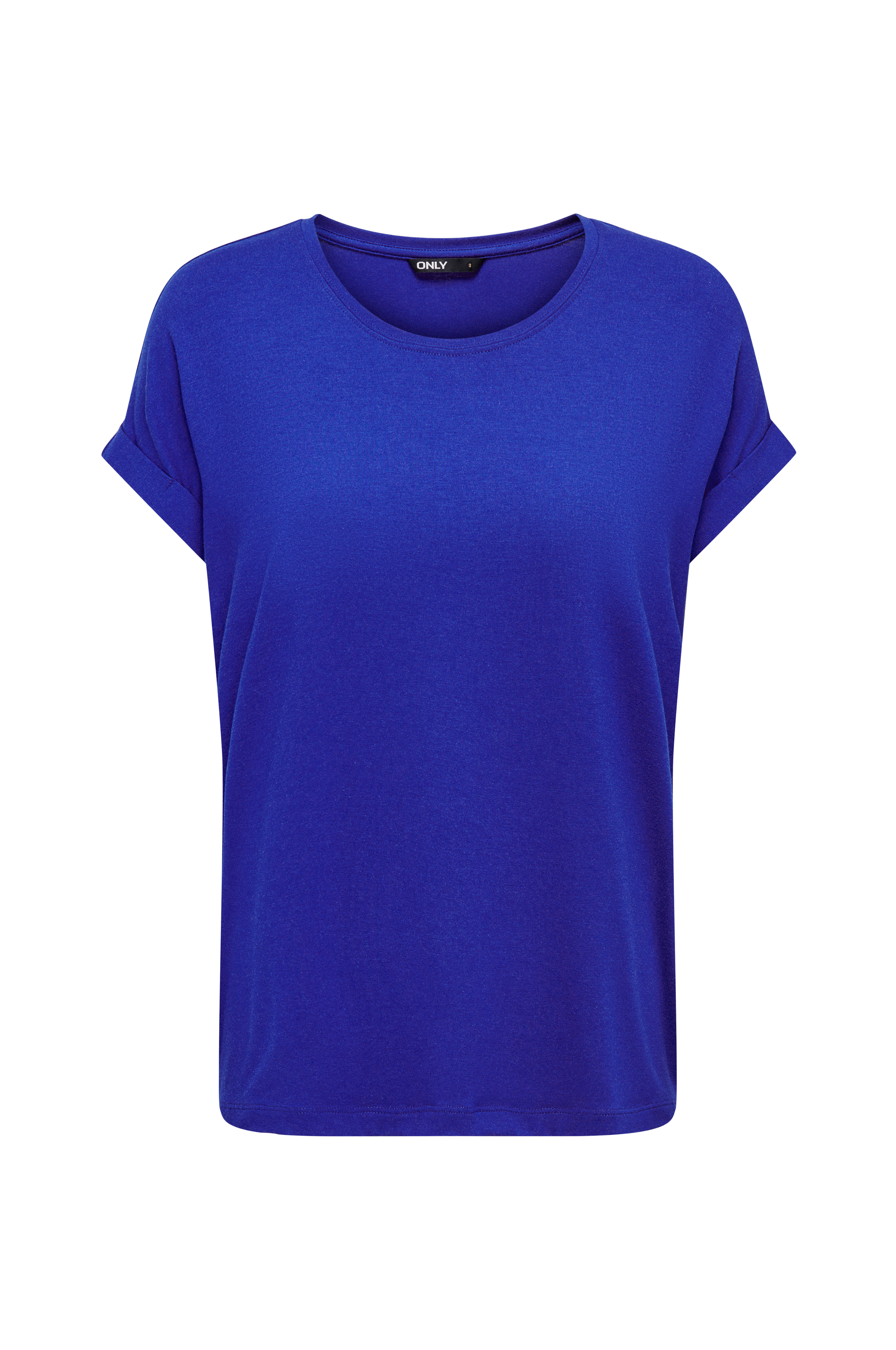 Top onlMoster S/S O-neck Top fra Only. Lige model i fin stretchjersey med blødt fald. Vid halsudskæring med lille ribkant og lav skulder med kort ærme som har fast opslag i kanten. Længde ca. 66 cm i str. S.