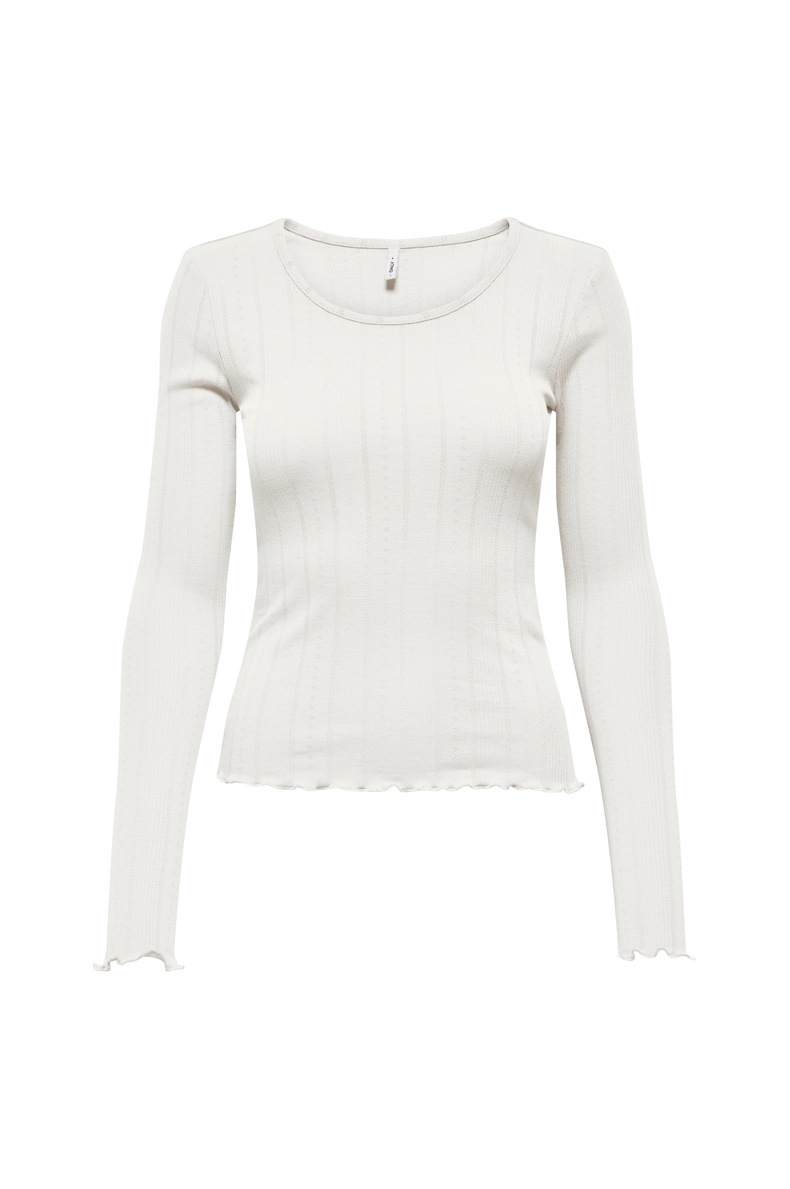 • Pointellestrikket top• Rund halsudskæring• Bølgede ærmeafslutninger• Bølget søm• Normal pasform