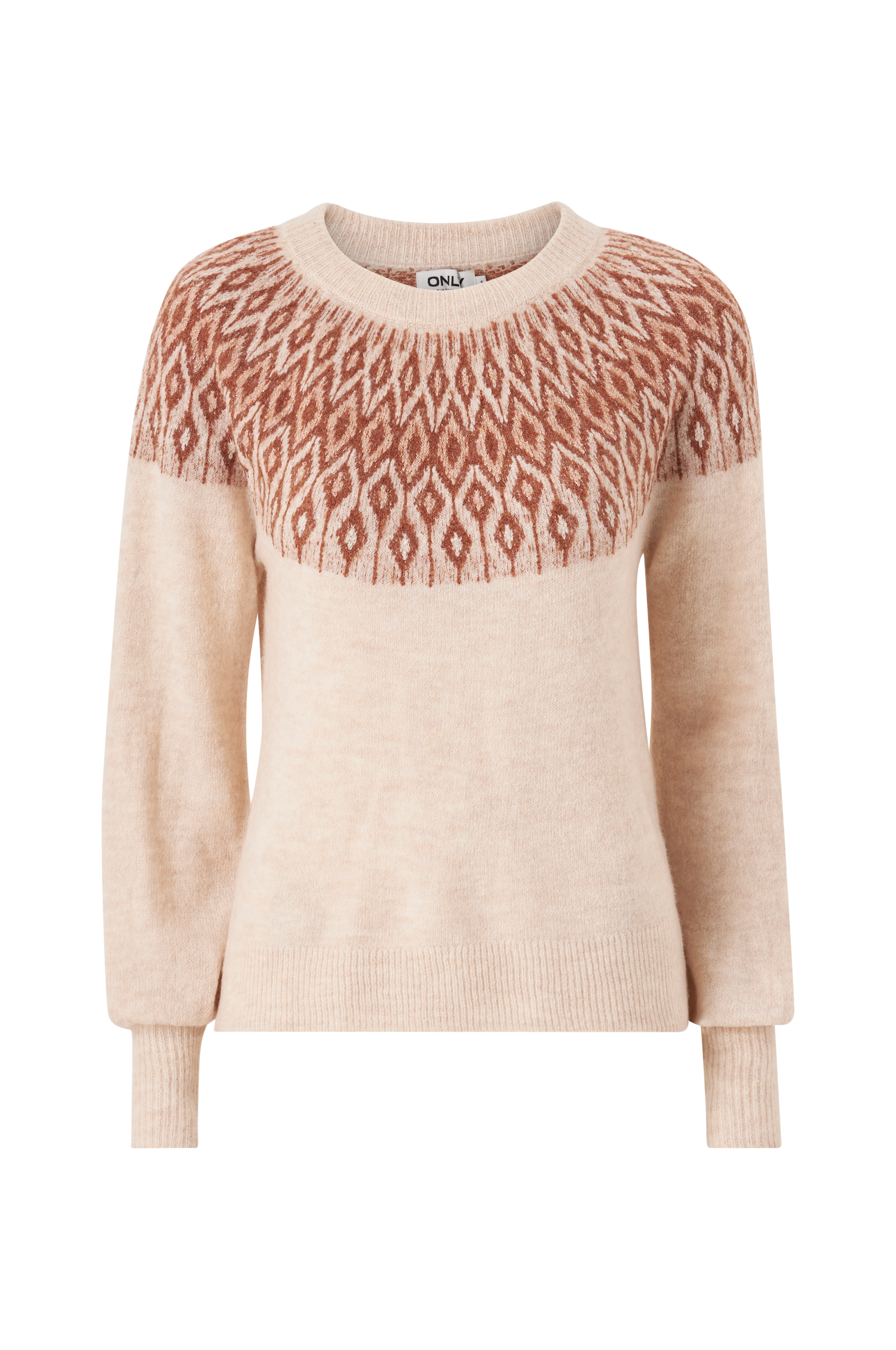 • Blød, strikket trøje• Mønsterstrikning med glimmertråd på toppen• Ribstrik ved manchetterne og nederst