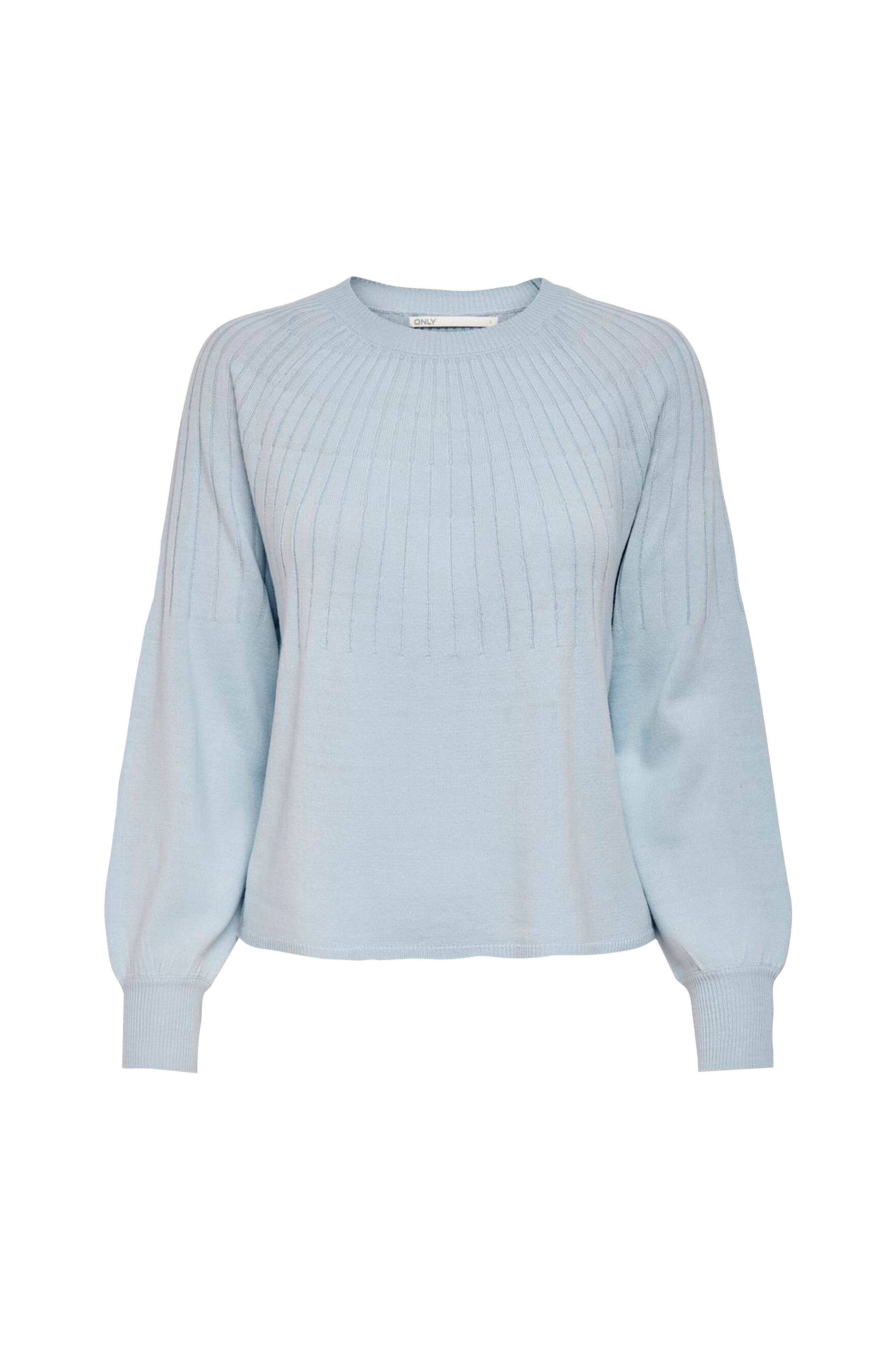 Finstrikket trøje i A-formet model med strukturstrikket mønster foroven foran og bagpå. Lange ærmer med ribstrikket ærmekant og fin form.