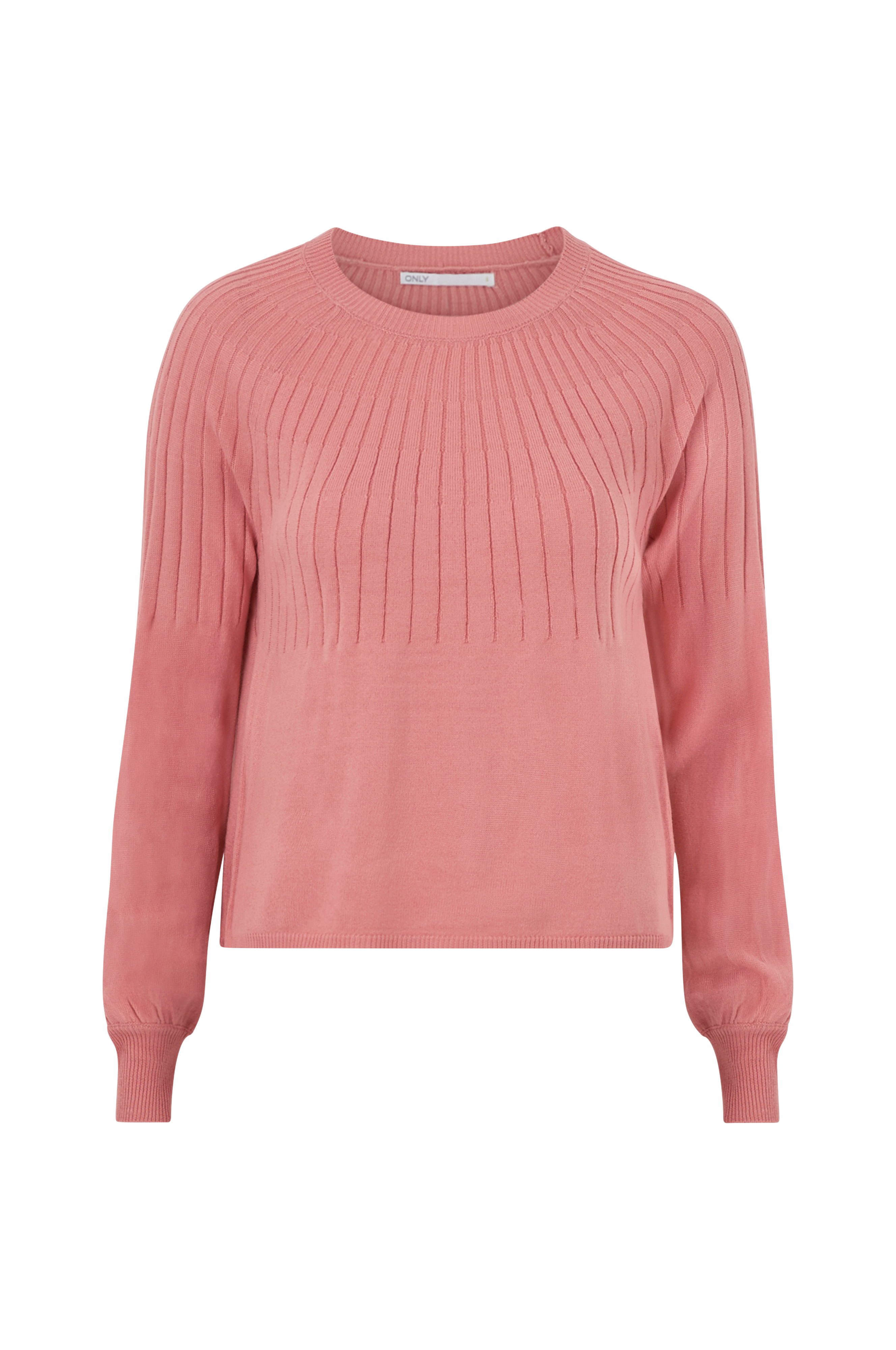 Finstrikket trøje i A-formet model med strukturstrikket mønster foroven foran og bagpå. Lange ærmer med ribstrikket ærmekant og fin form.
