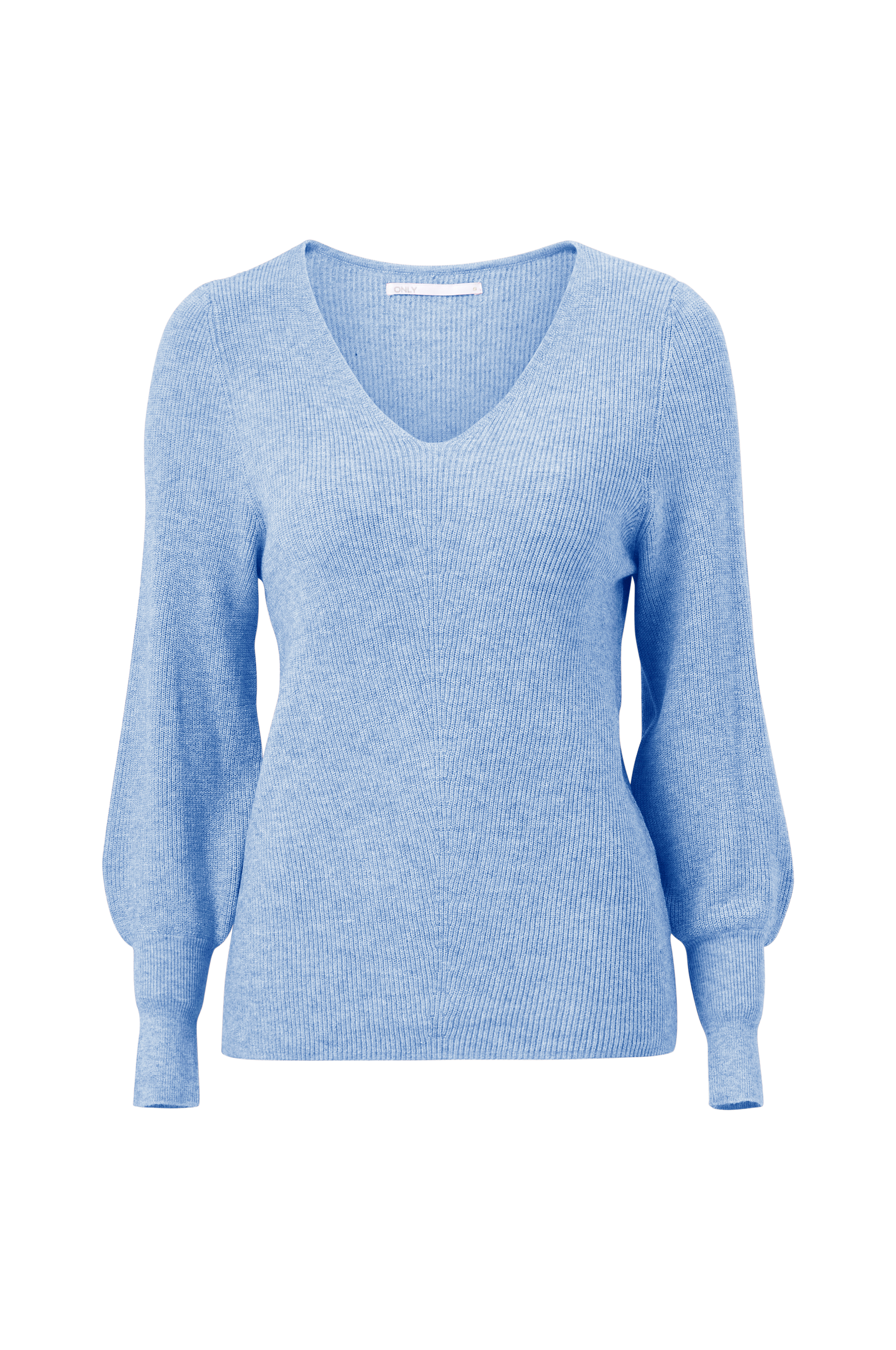 • Lige, ribstrikket model• V-formet halsudskæring• Langt ærme med bred manchet