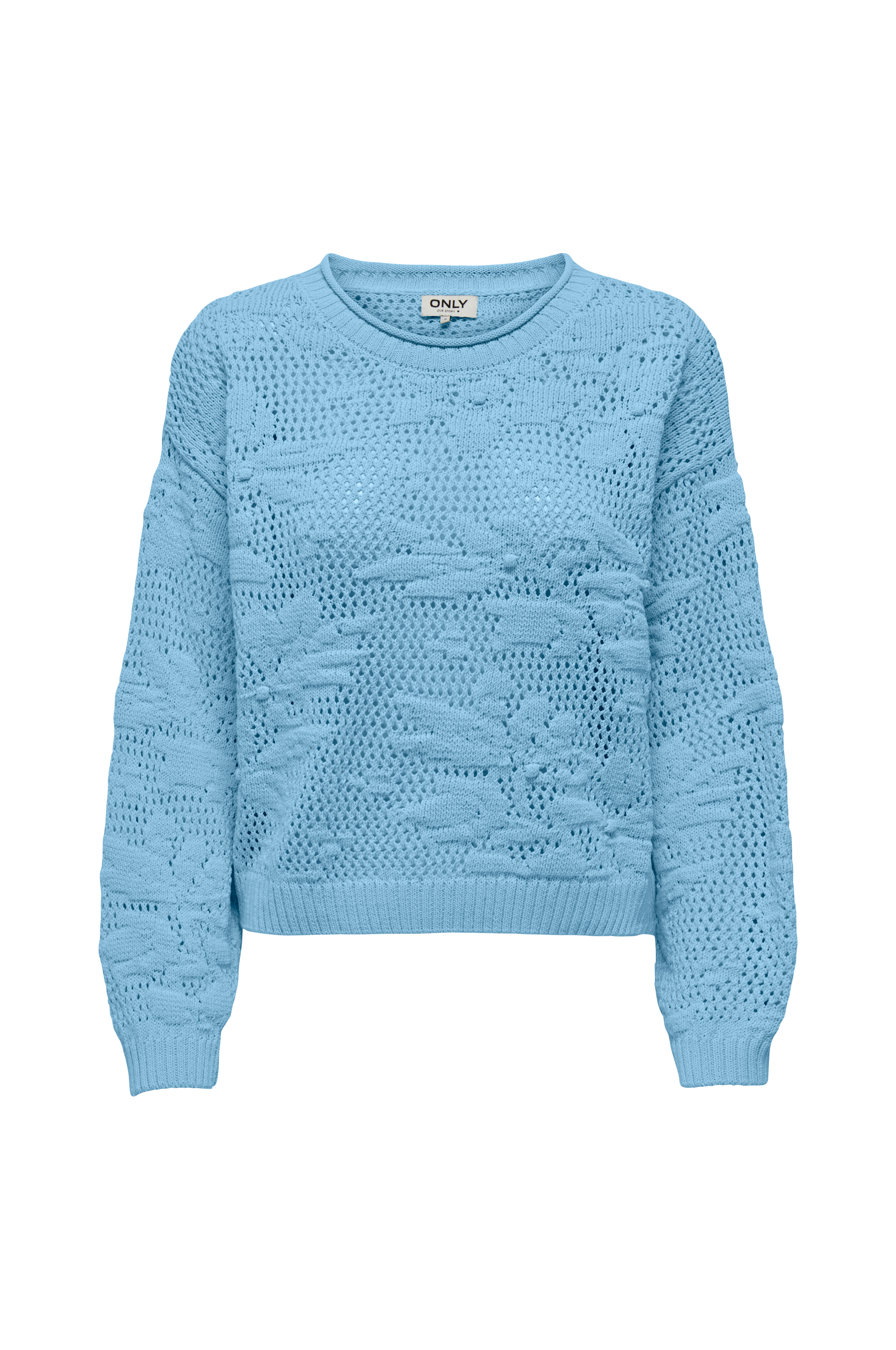 • Strukturstrikket trøje• Nedsænkede skuldre• Rullet kant i halsen