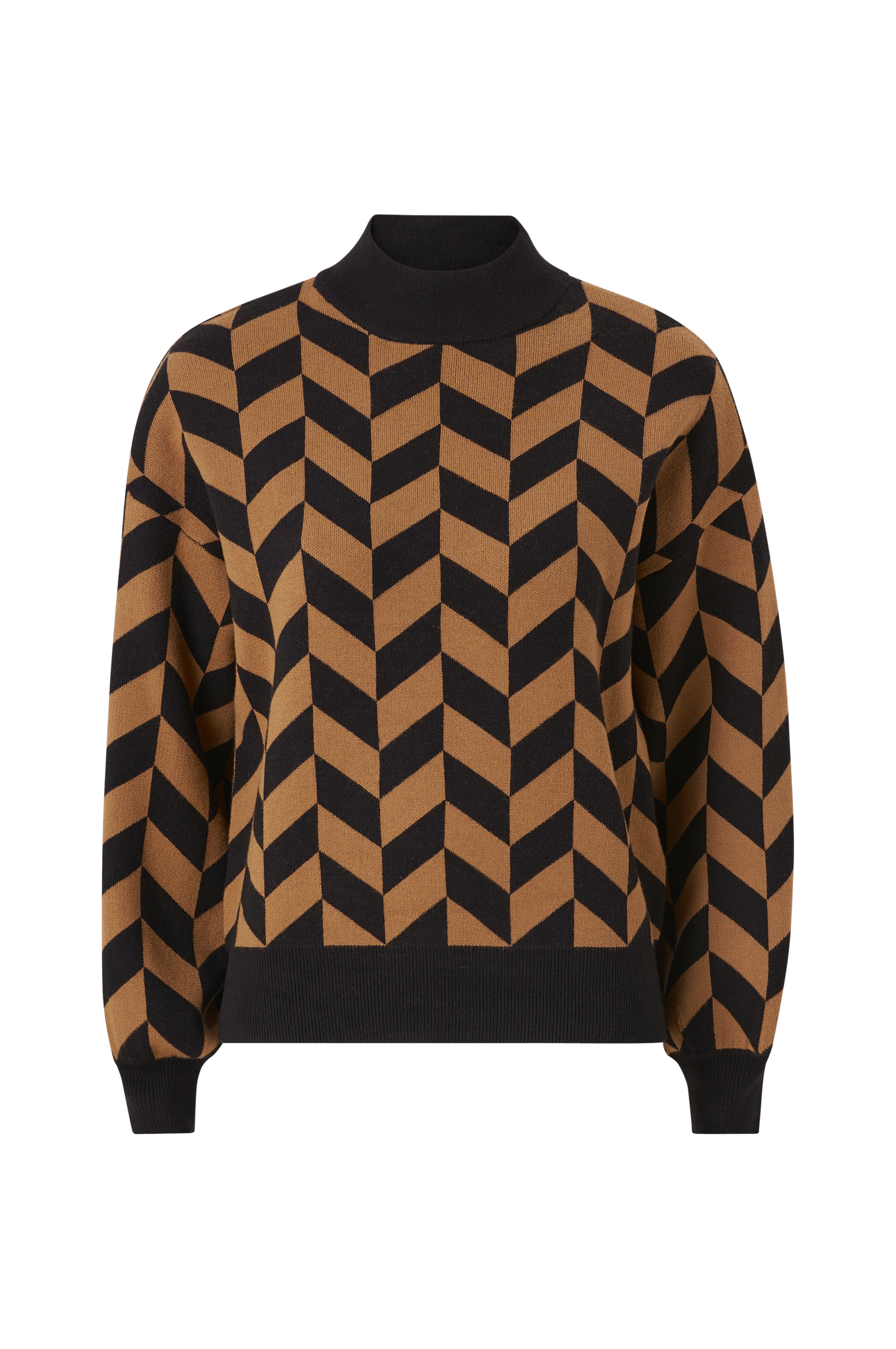 • Strikket trøje• Fremstillet af viskoseblanding• Rund, høj, ribbet halsudskæring• Nedsænkede skuldre• Ribmanchetter ved manchetterne og nederst