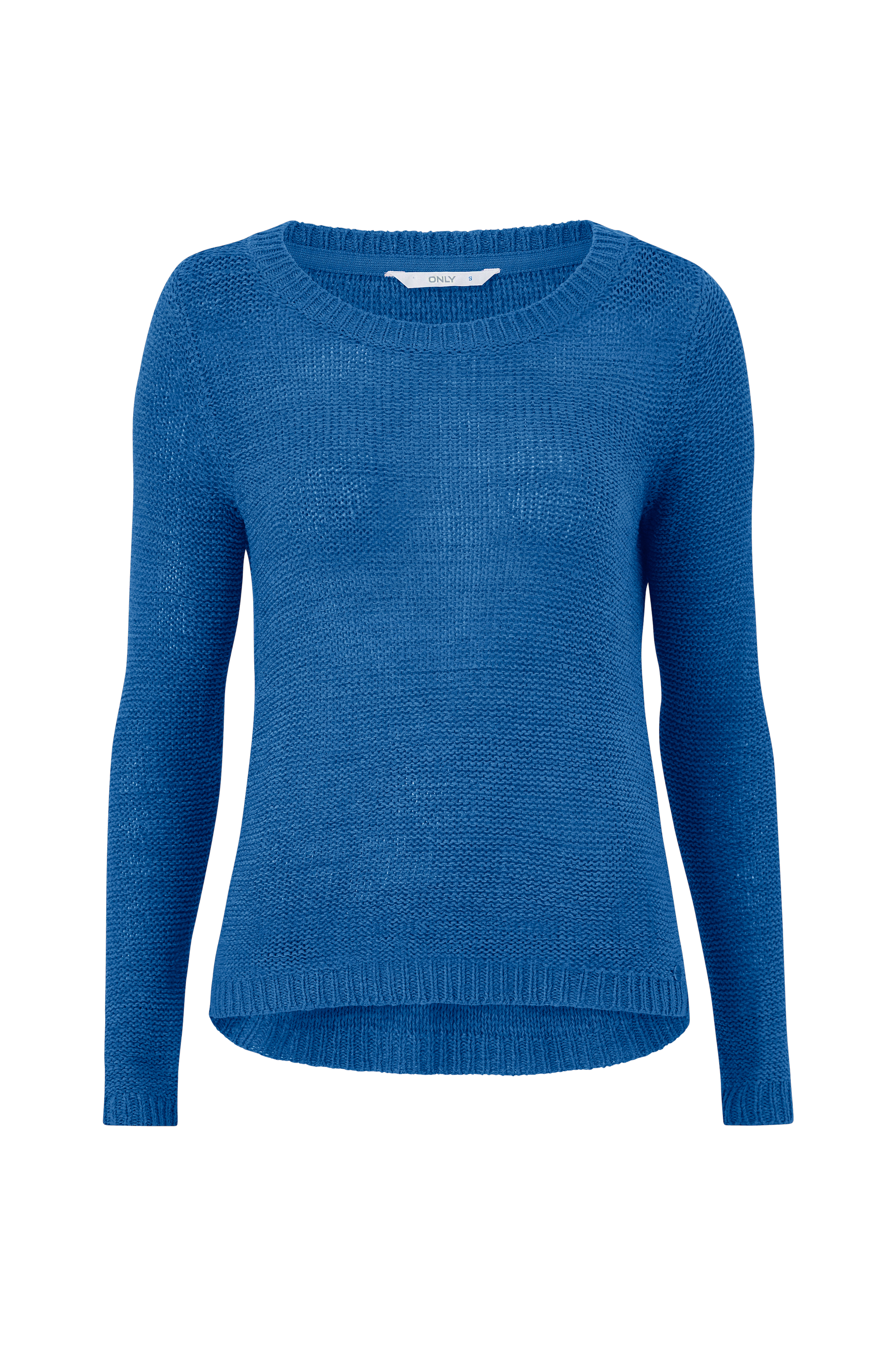 Striktrøje onlGeena XO L/S fra Only. Rund, vid halsudskæring med ribkant. Rib i ærmekanten og forneden. Længde bagpå ca. 68 cm og foran ca. 61 cm i str. M.