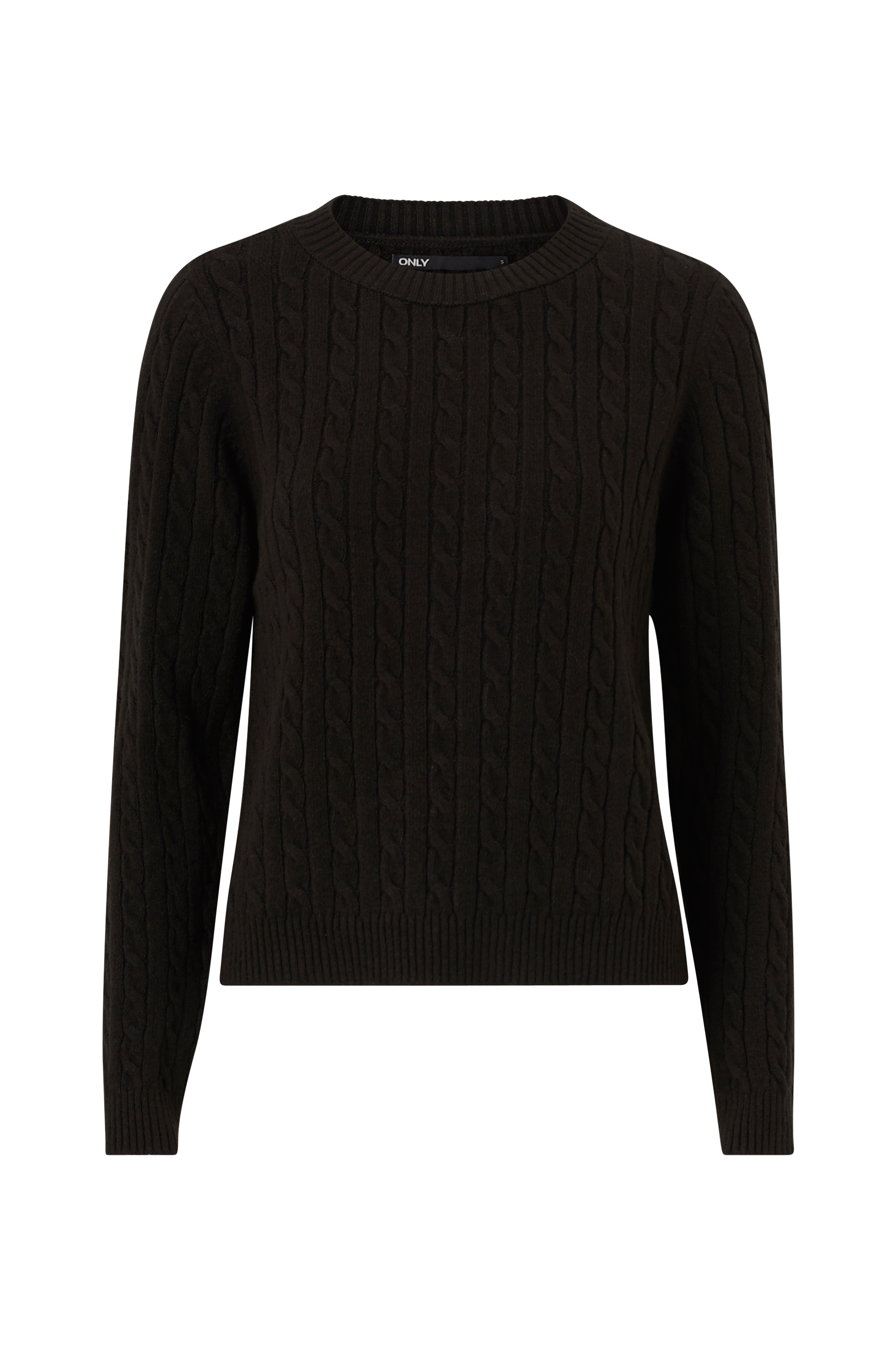 Trøje onlMegan L/S Cable Pullover fra Only. Lige model i blød kvalitet med fletstrikket mønster over det hele. Rund hals med ribstrikket kant samt ribstrik også forneden og i ærmekant.