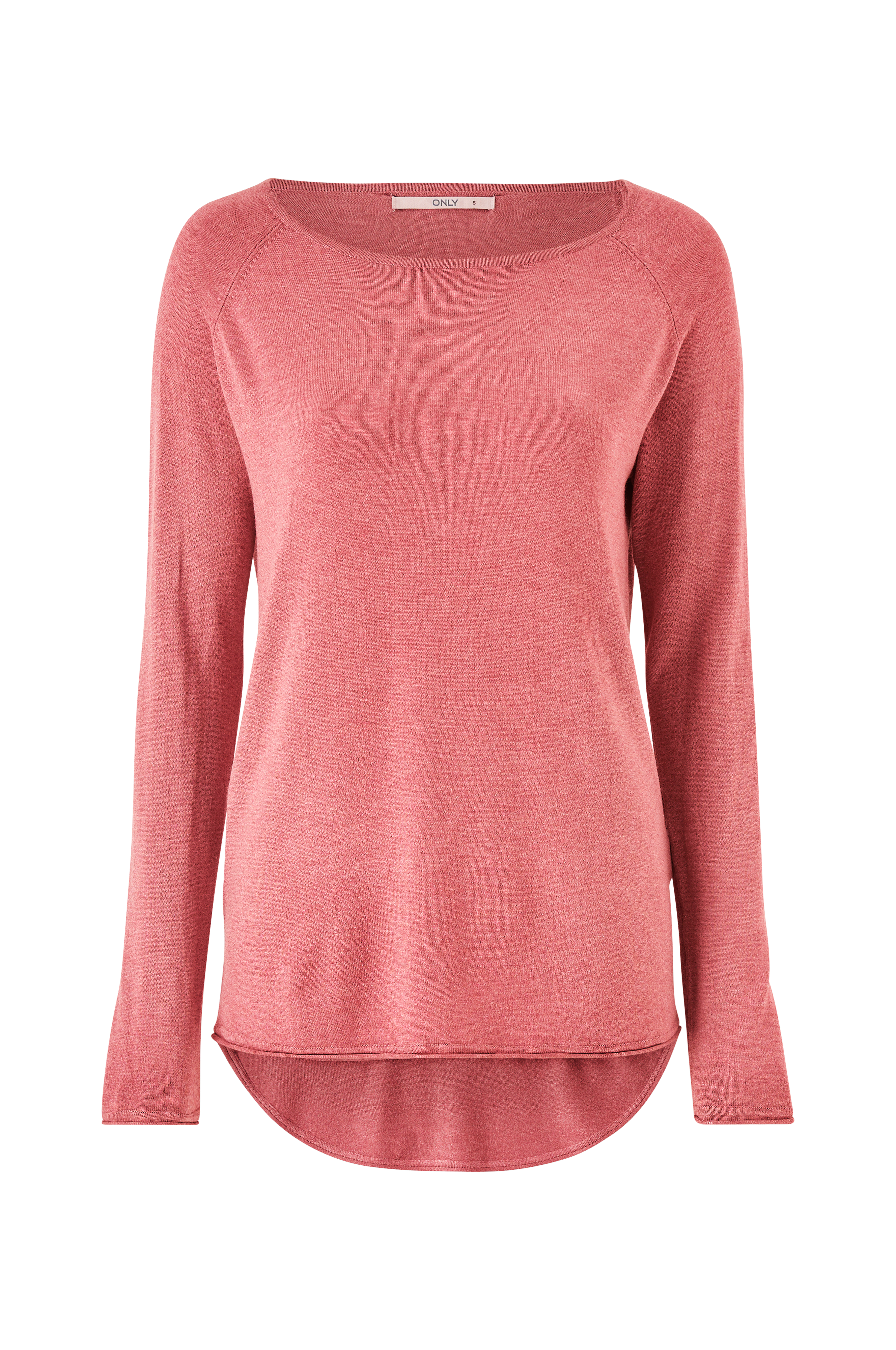Trøje onlMila Lacy L/S Long Pullover Knt fra Only i lang model med afrundet, længere kant forneden bagpå. Vid halsudskæring med smal ribkant. Rullet kant i ærmekant og kant forneden. Blød finstrikket kvalitet.