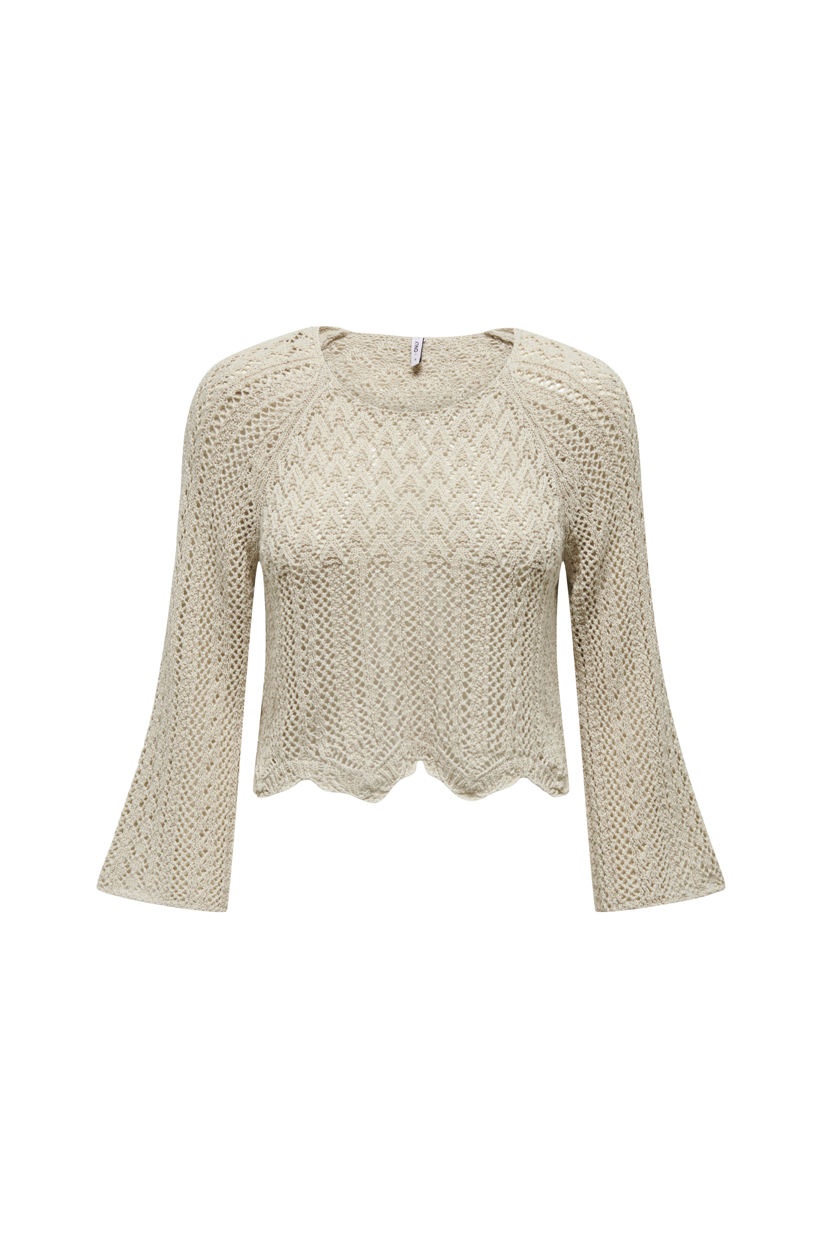 • Kort, løststrikket trøje• Trompetærmer• Bølget søm• Produktet indeholder genanvendt bomuld, der er fremstillet af restprodukter eller fra brugt materiale. Med genanvendt bomuld kræves færre kemikalier og mindre vand til produktionen.