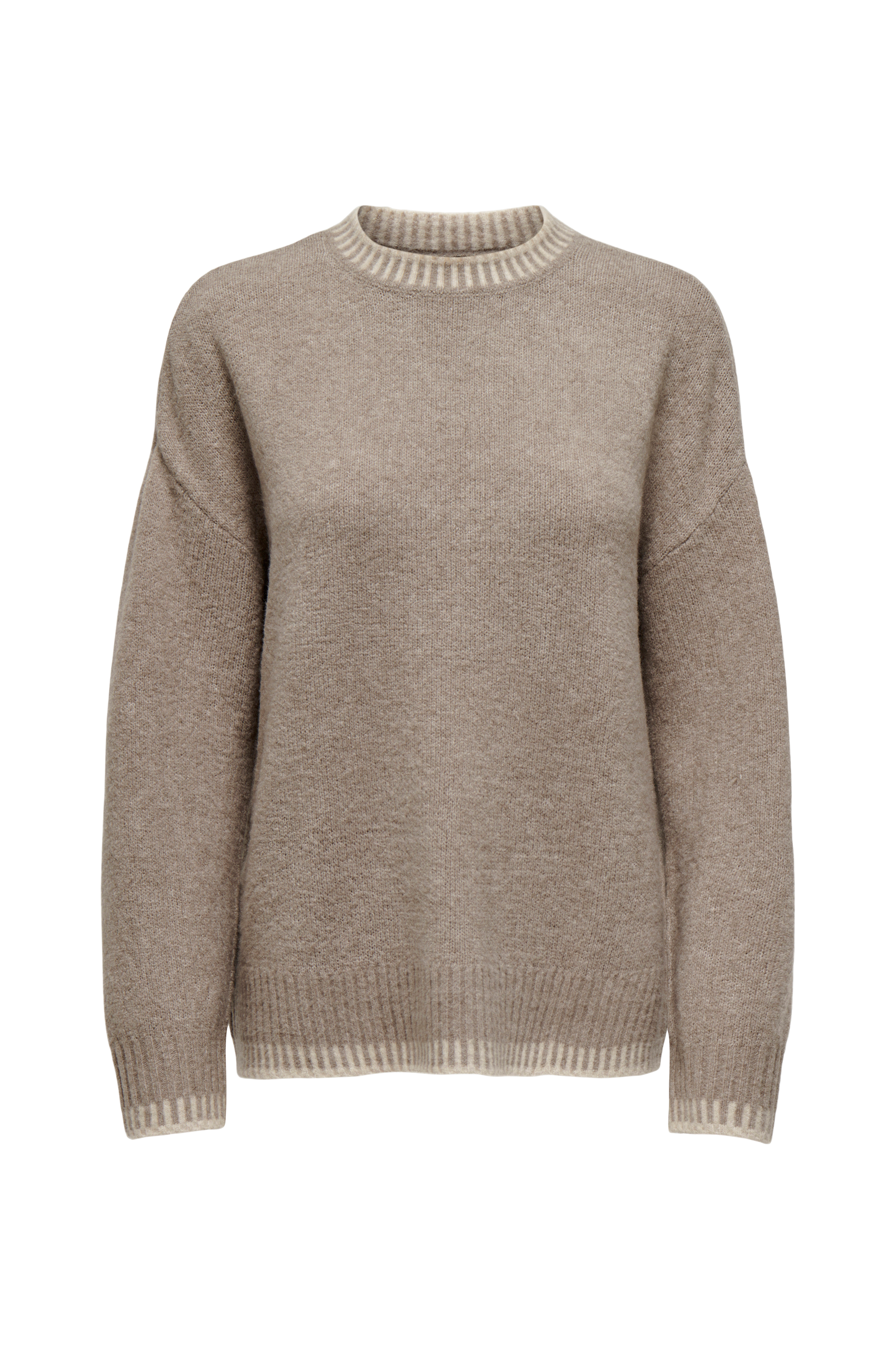 • Fintstrikket trøje med strikket mønster på halsen, ved ærmeafslutningerne og nederst• Ribstrikket crewneck med afrundet kant• Nedsænket skulder• Ribstrik ved manchetterne og nederst