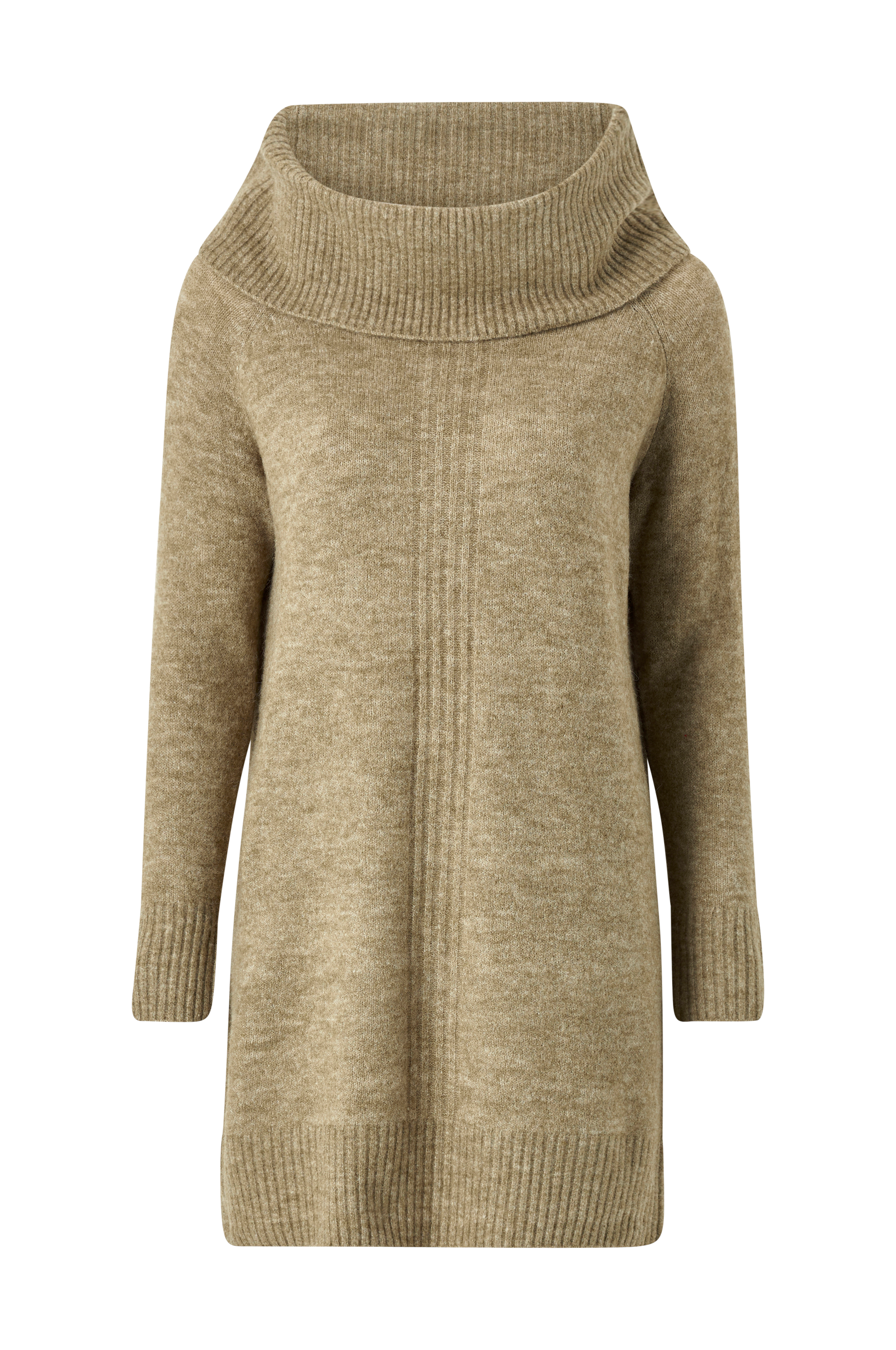 • Strikket trøje• Lang model• Stor, ribstrikket polokrave• Raglanærmer
