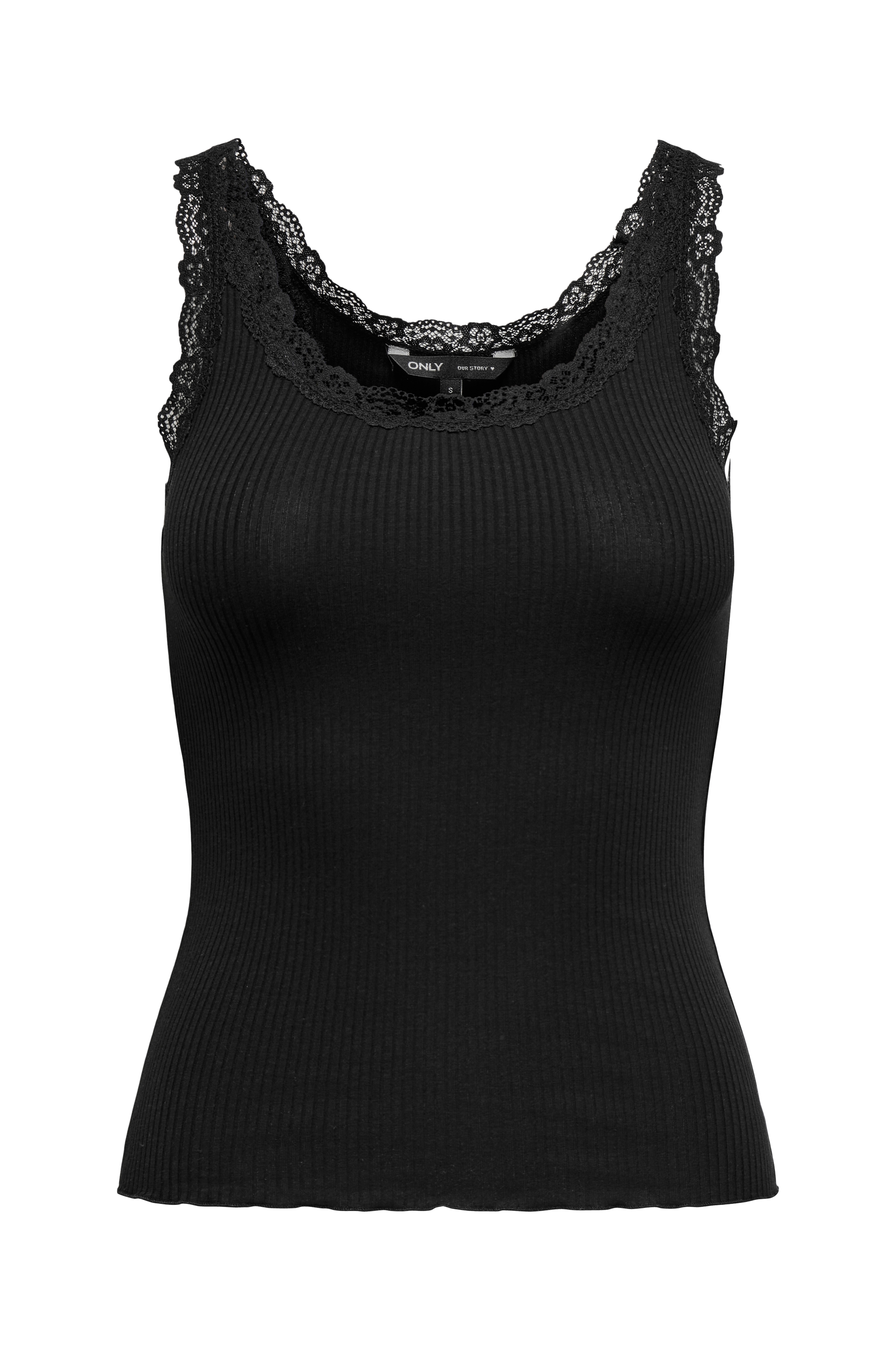 • Figursyet, ærmeløs model• Blondekanter på toppen• Bølget kant nederst