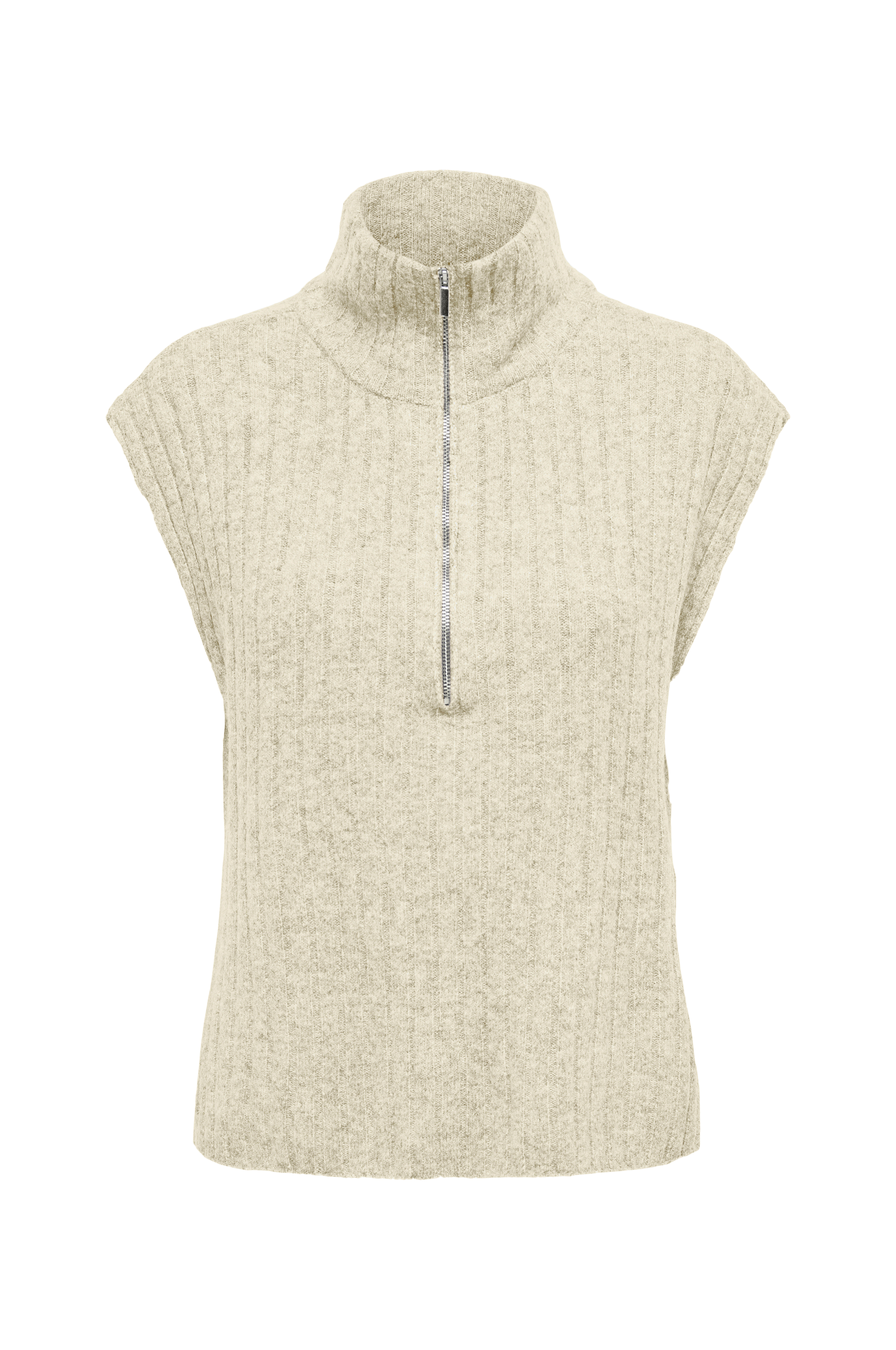 • Ribstrikket vest med høj krave• Halvlang lynlås foran• Slids nede i siderne