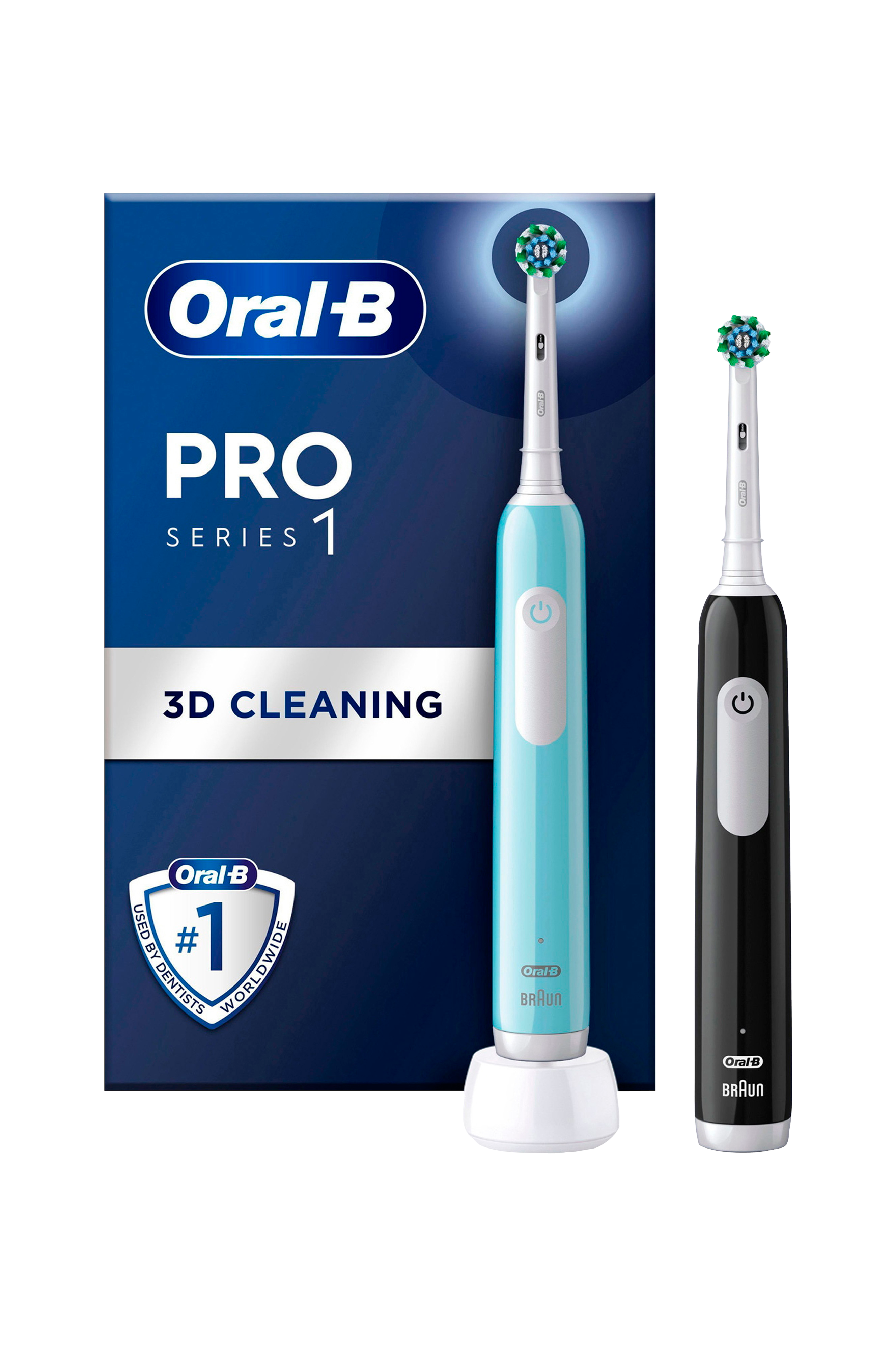 Oplev Oral-B Pro Series 1. Den professionelle timer i el-tandbørste Series 1 hjælper dig til at børste de 2 minutter som tandlæger anbefaler og minder dig hvert 30. sekund om at børste i et nyt område. Du skal bare flytte børsten rundt i munden, så gør Oral-B's unikke runde hoved resten. Den fjerner op til 100% mere plak end en almindelig tandbørste for sundere tandkød og fjerner overfladiske misfarvninger for hvidere tænder allerede efter første brug.