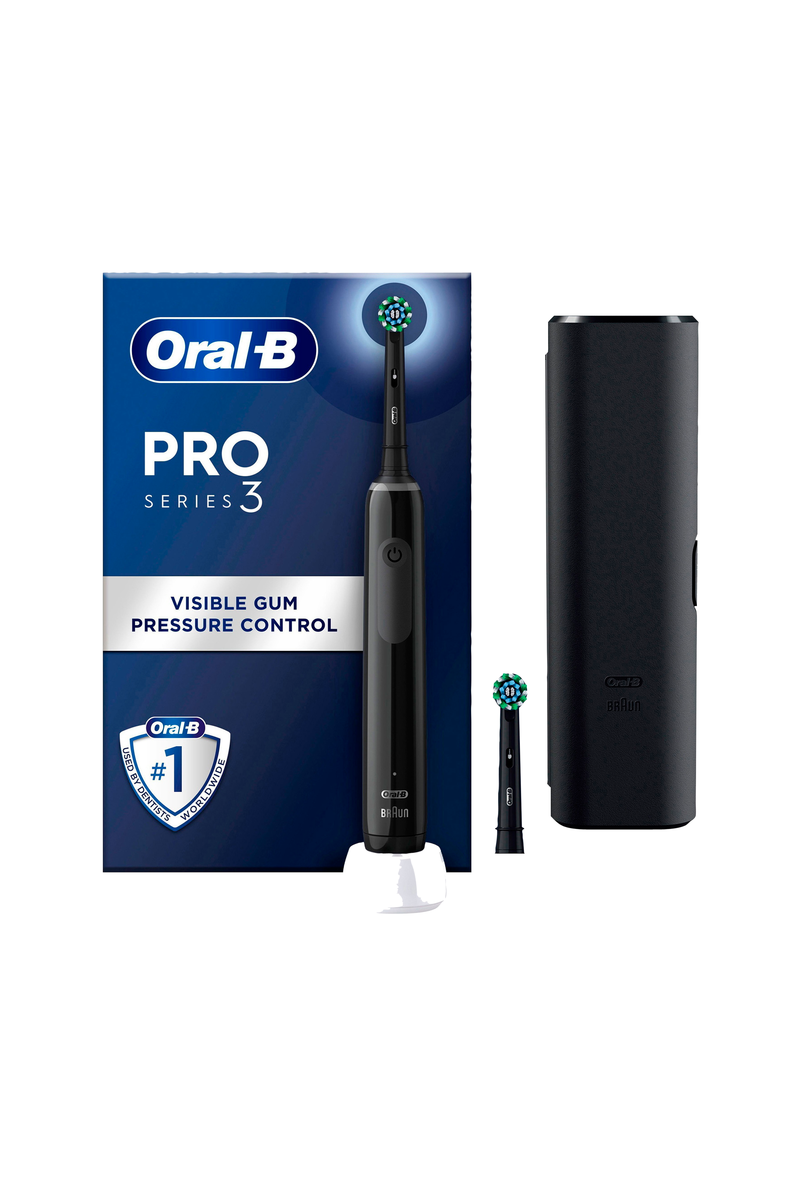 Oplev Oral-B Pro Series 3. Den professionelle timer i el-tandbørste Series 1 hjælper dig til at børste de 2 minutter som tandlæger anbefaler og minder dig hvert 30. sekund om at børste i et nyt område. Du skal bare flytte børsten rundt i munden, så gør Oral-B's unikke runde hoved resten. Den fjerner op til 100% mere plak end en almindelig tandbørste for sundere tandkød og fjerner overfladiske misfarvninger for hvidere tænder allerede efter første brug. Desuden hjælper tandbørsten dig med at beskytte tandkødet ved hjælp af 360° tryksensorteknologi, som sætter børstehastigheden ned og gør dig opmærksom på at børste mere skånsomt, hvis du børster for hårdt.