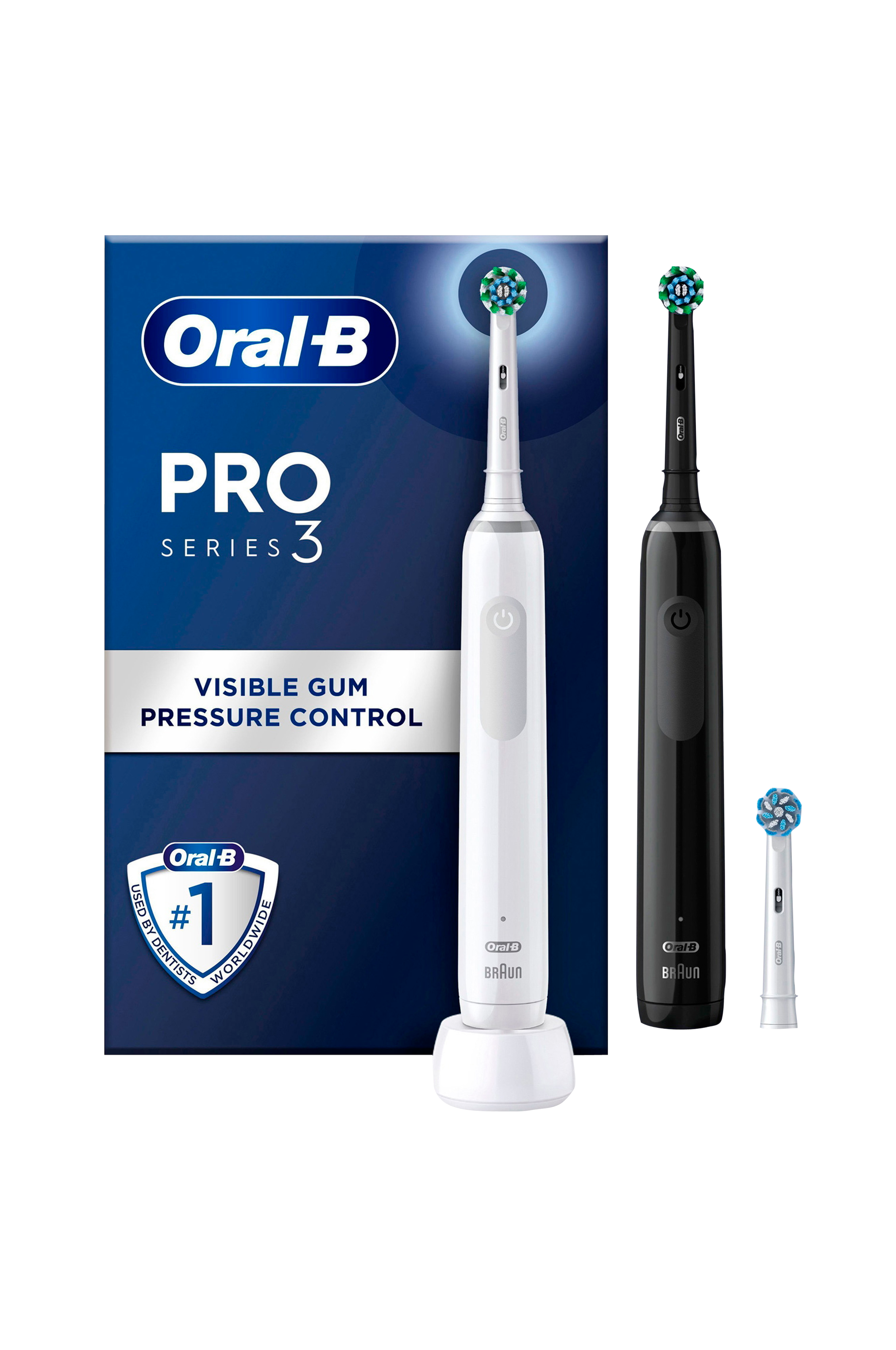 Oplev Oral-B Pro Series 3. Den professionelle timer i el-tandbørste Series 1 hjælper dig til at børste de 2 minutter som tandlæger anbefaler og minder dig hvert 30. sekund om at børste i et nyt område. Du skal bare flytte børsten rundt i munden, så gør Oral-B's unikke runde hoved resten. Den fjerner op til 100% mere plak end en almindelig tandbørste for sundere tandkød og fjerner overfladiske misfarvninger for hvidere tænder allerede efter første brug. Desuden hjælper tandbørsten dig med at beskytte tandkødet ved hjælp af 360° tryksensorteknologi, som sætter børstehastigheden ned og gør dig opmærksom på at børste mere skånsomt, hvis du børster for hårdt.