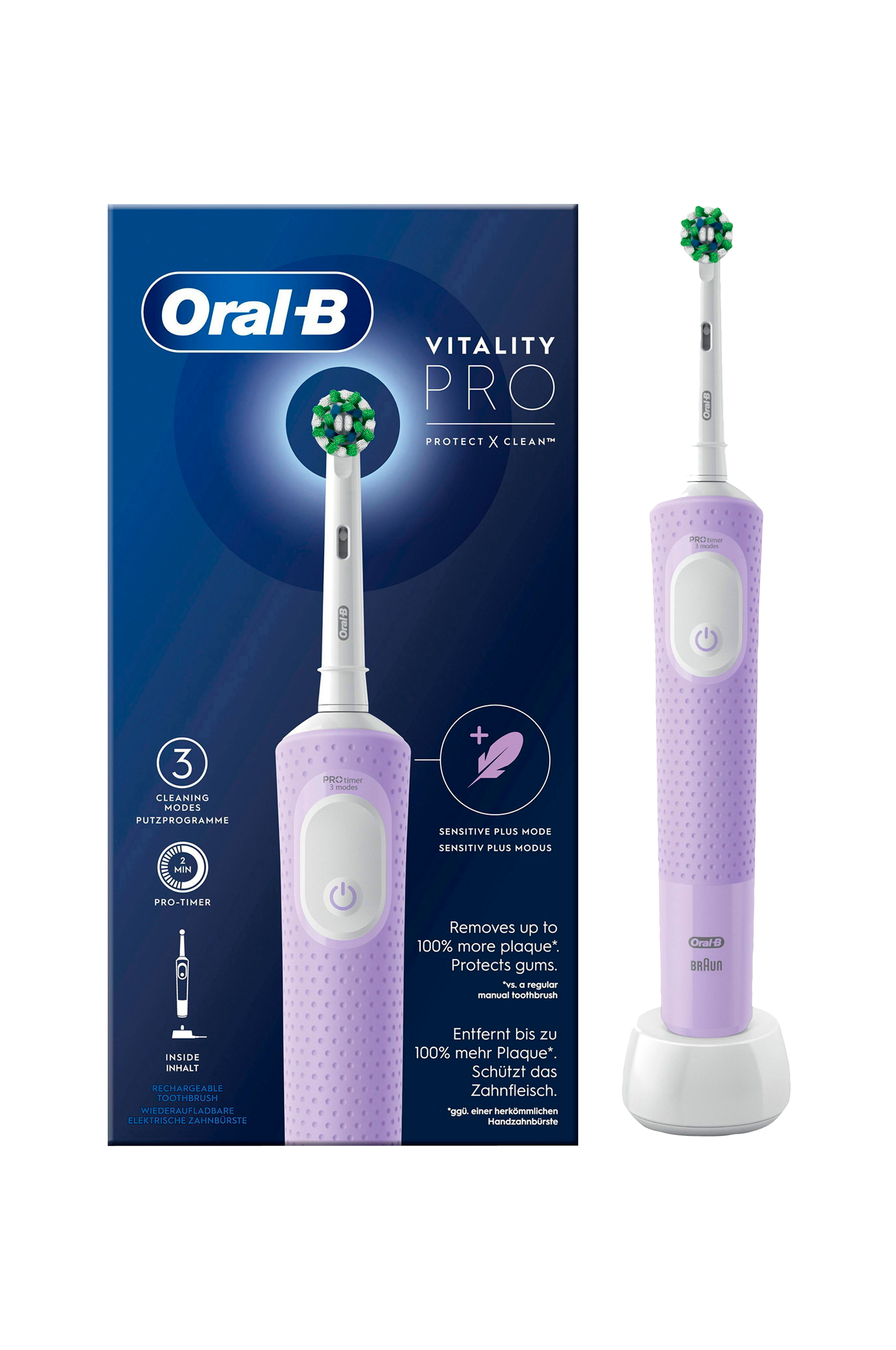Oral-B Vitality Pro er en genopladelig eltandbørste, der giver overlegen rengøring sammenlignet med en almindelig manuel tandbørste. Tandbørsten har 3 børstetilstande: Daglig børstning, Blød og Sensitive Plus-tilstand for en utroligt skånsom oplevelse. Timeren som er indbygget i håndtaget hjælper dig til at børste i 2 minutter ifølge tandlægernes anbefaling.