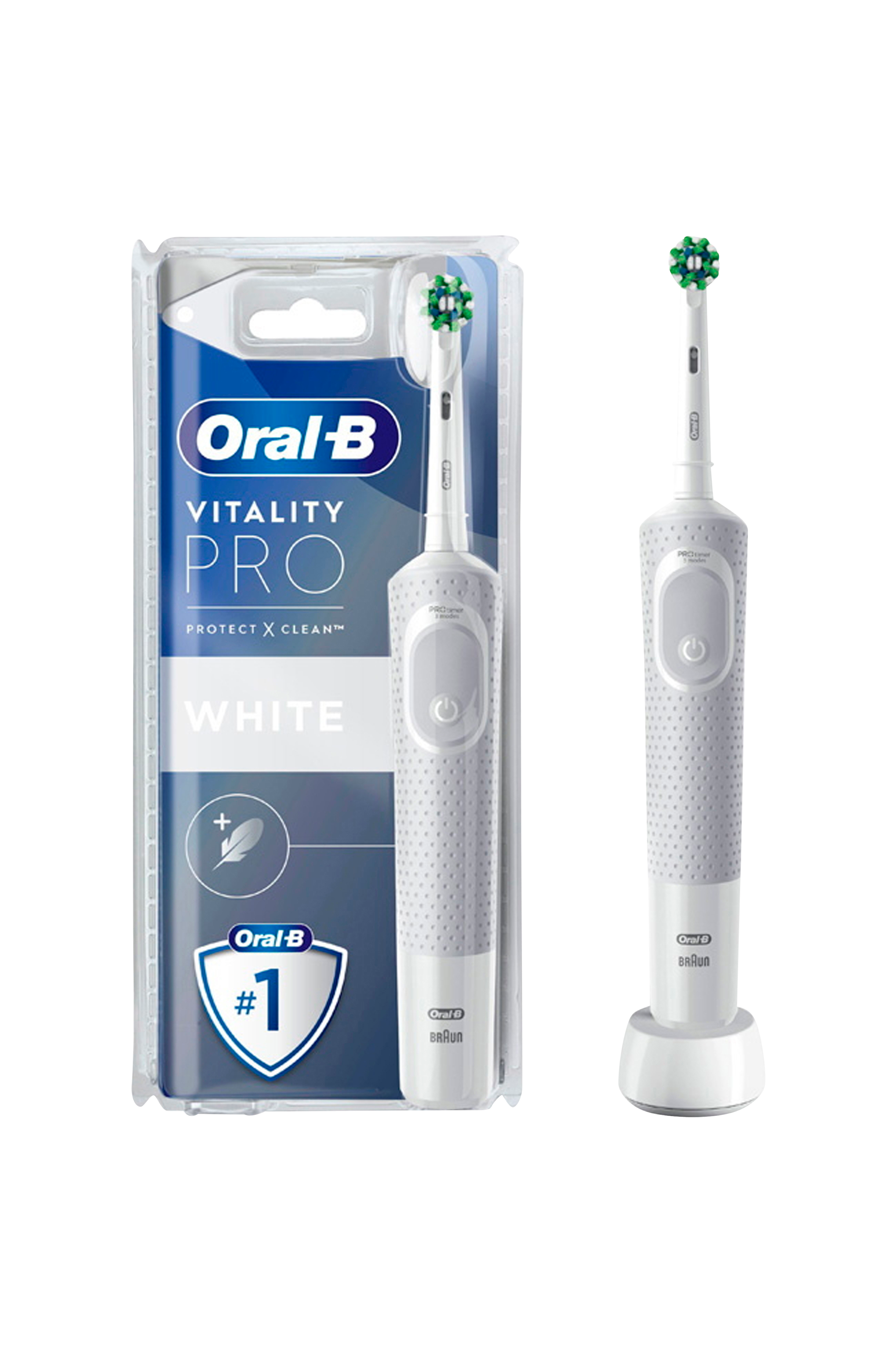 Oral-B Vitality Pro genopladelige elektriske tandbørste giver overlegen rengøring sammenlignet med en almindelig manuel tandbørste. Timeren som er indbygget i håndtaget hjælper dig til at børste i 2 minutter ifølge tandlægernes anbefaling.