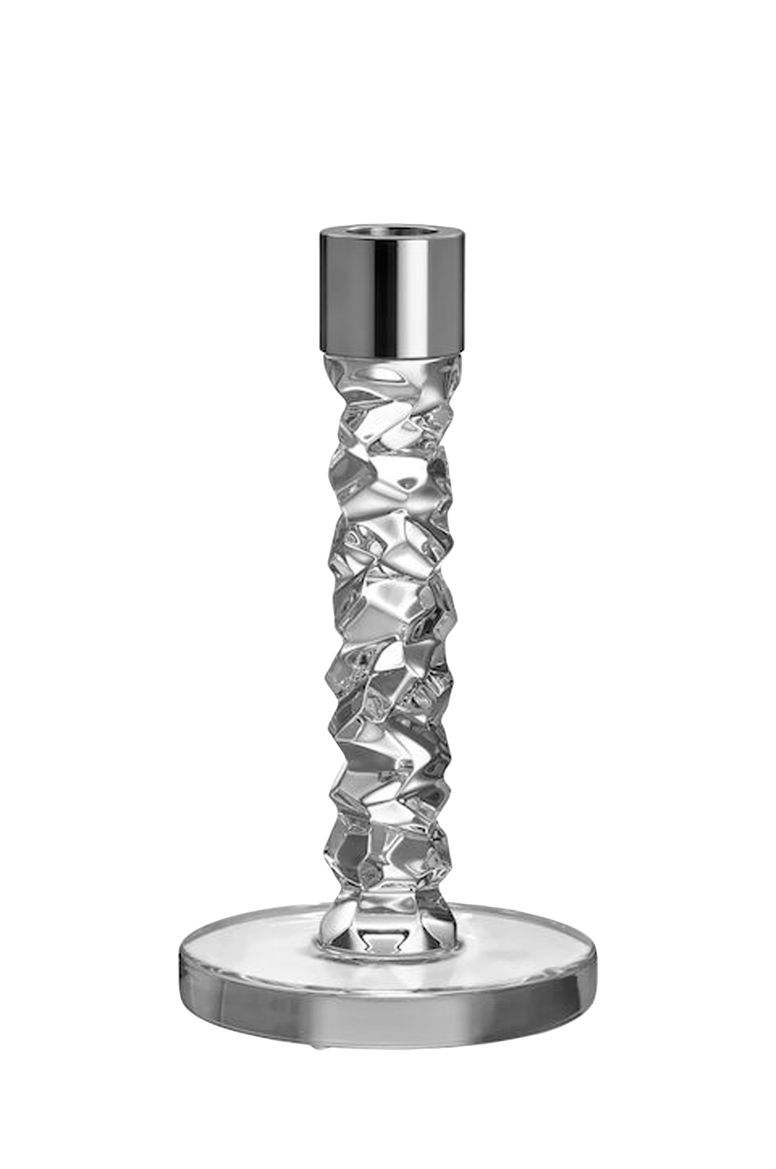 Carat lysestage i klart glas findes i tre højde med detaljer i bronze eller rustfrit stål. Dette er den mindste størrelse.