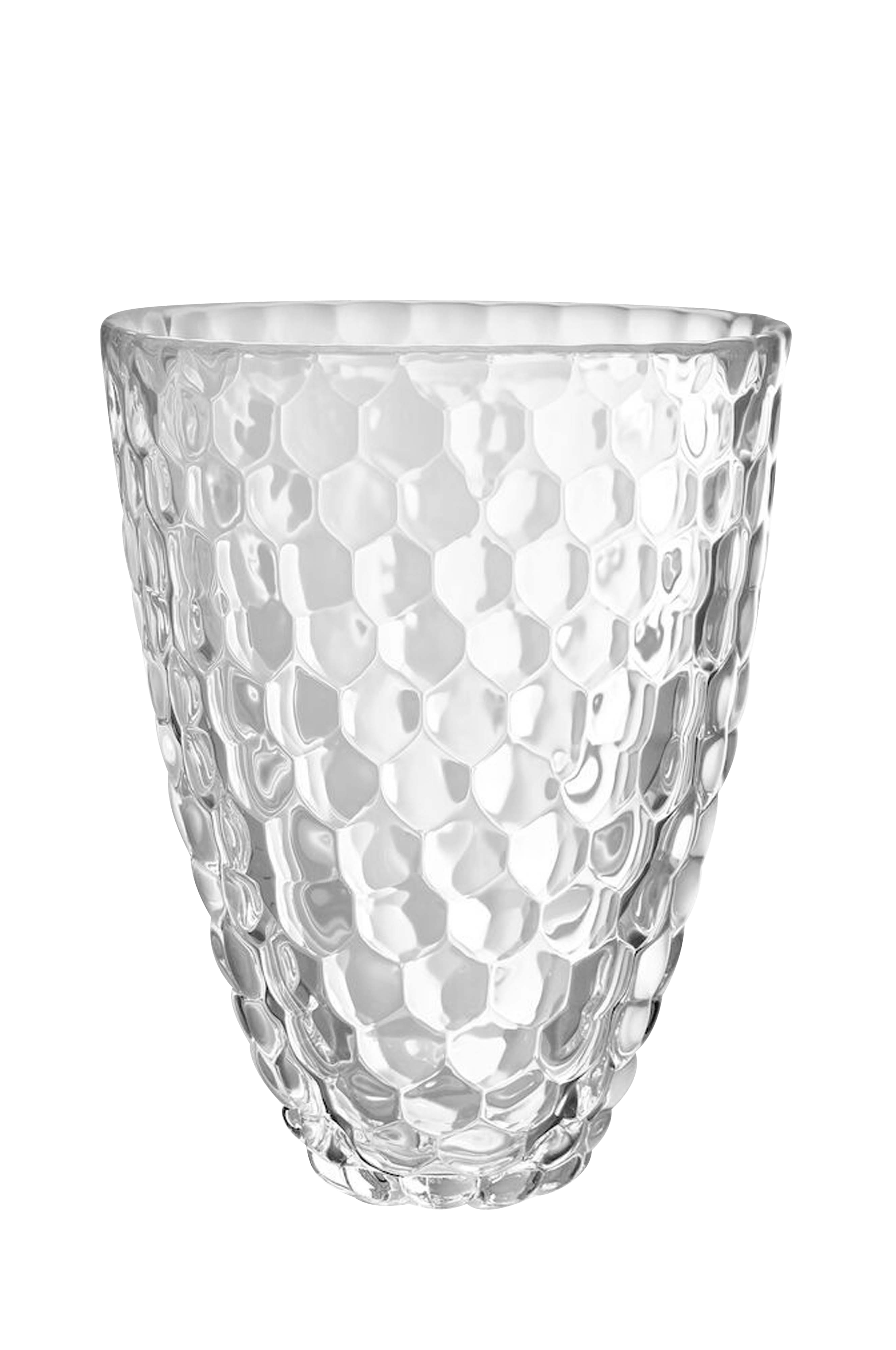 Vasen i Hallon-serien fra Orrefors har et design, der ligner en hindbær med det uregelmæssige mønster.Designet af Anne Nilsson.