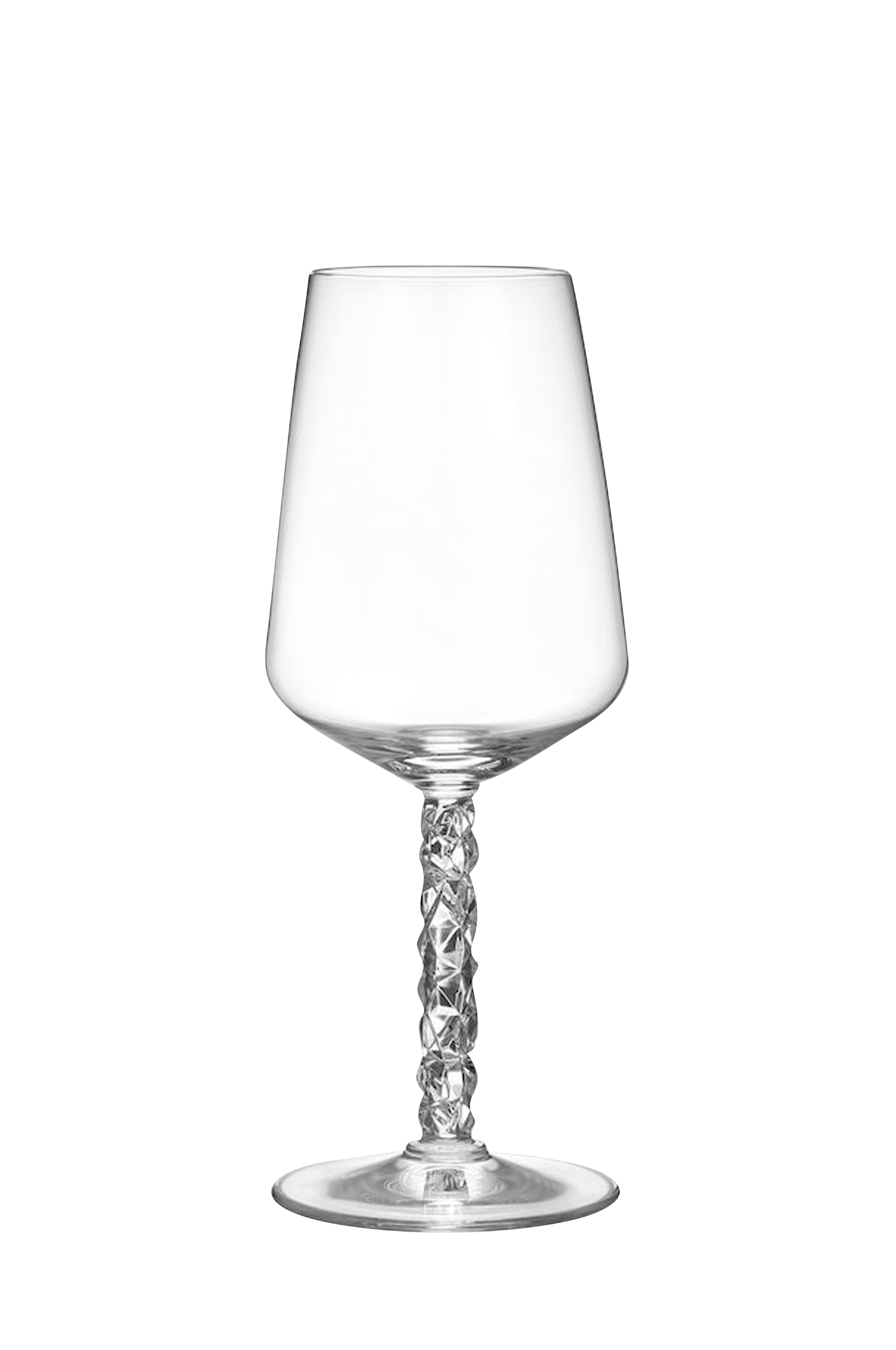 Carat-serien er baseret på en nutidig fortolkning af traditionel glasslibning, der har gjort Orrefors verdensberømt. Den uregelmæssige geometri skaber smukke lysreflektioner i krystalglasset. Glassets stilk er dækket med det mønster, som kendetegner serien. Design: Lena Bergström.