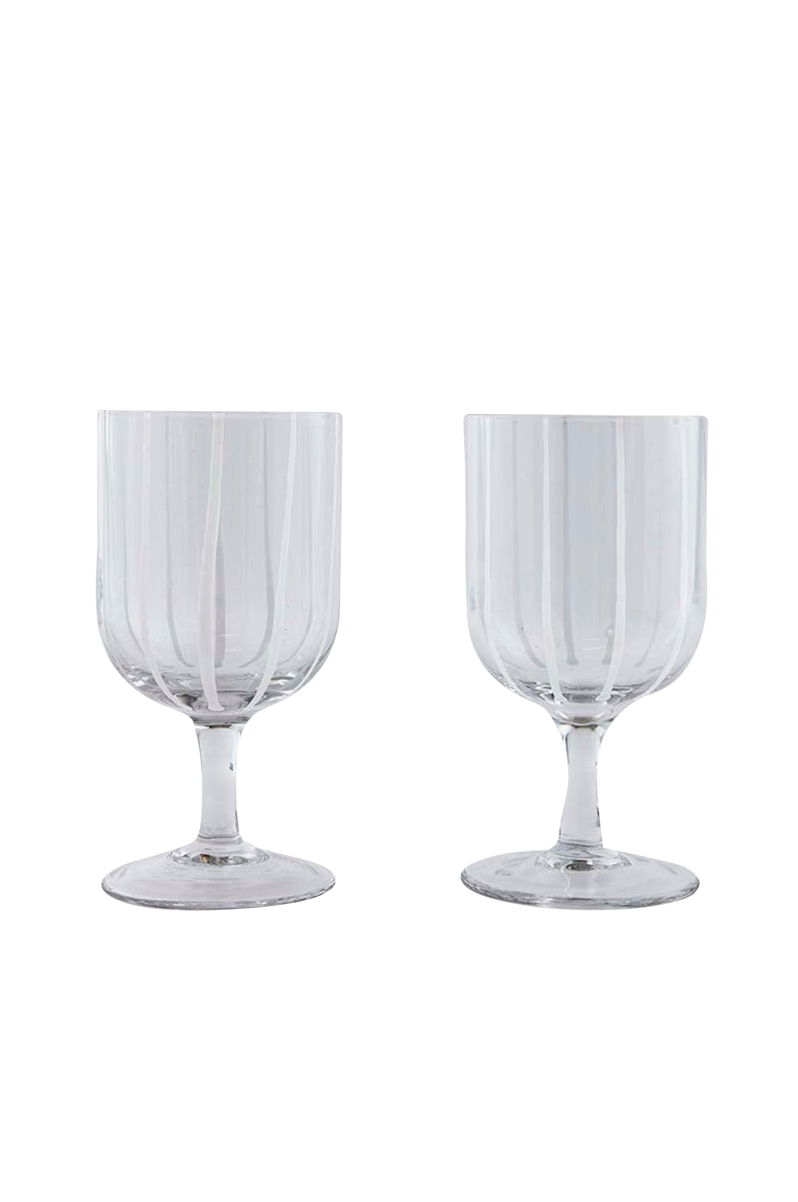 Mizu-serien er kendetegnet ved et elegant, yndefuldt og moderne udtryk, der passer godt ind i det moderne hjem. Med sine hvide striber får vinglasset et legende udtryk. Vinglasset med kort stilk, som er kombineret med det store glas, er meget velegnet på et smukt bord. Hvert glas er unikt, da det er mundblæst og med håndlavede detaljer. Mizu-vinglasset kommer i et sæt med to. Vinglasset har en volumen på 350 ml.