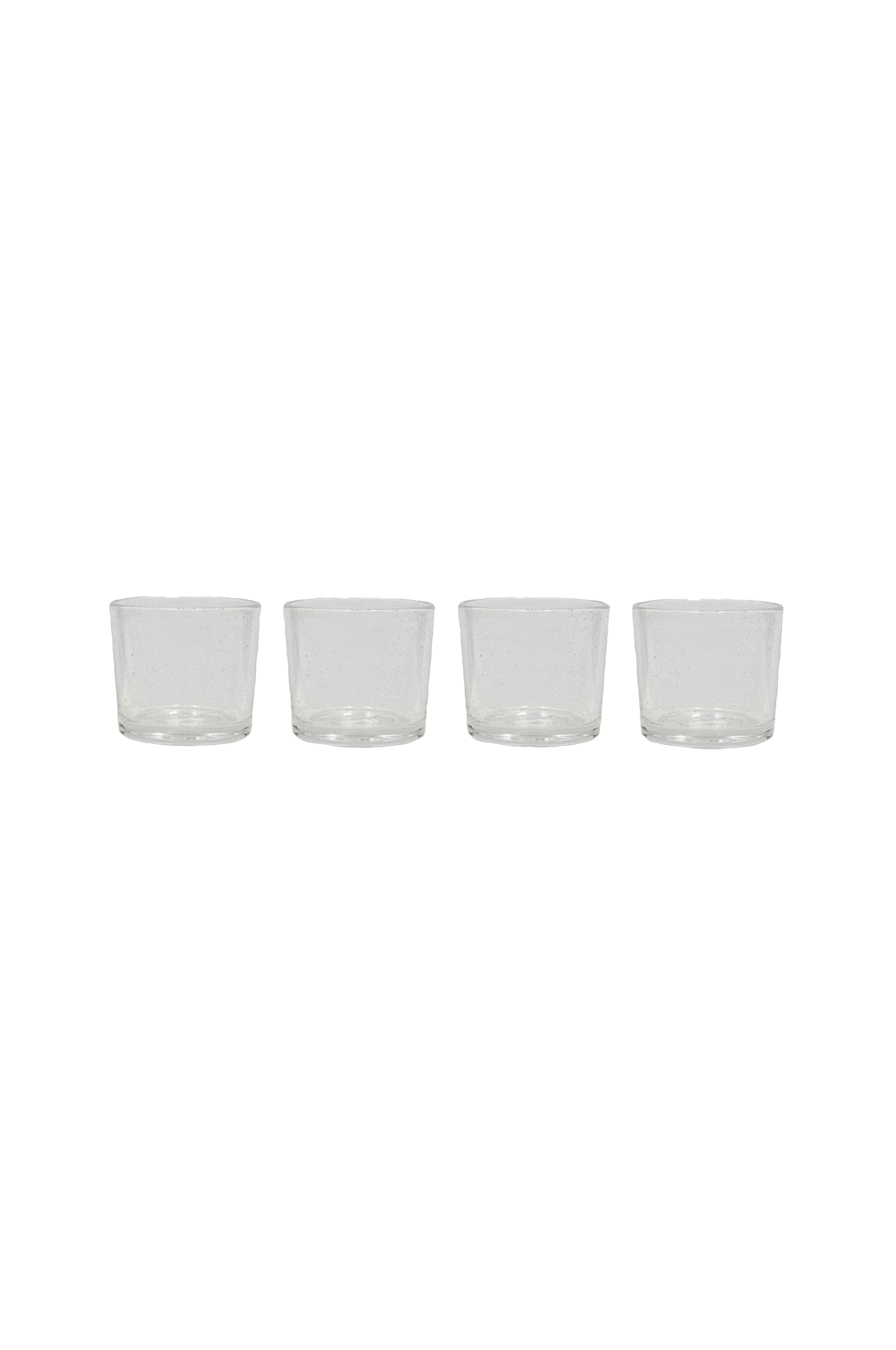 kuki glassene i en pakke med 4 stk. har boblesprøjt, der tilføjer et strejf af finurlighed til deres minimalistiske design. Den elegante form blander funktionalitet med tidløs æstetik, hvilket gør dem perfekte til enhver borddækning. Brug dem til hverdag eller til særlige lejligheder. Da de er mundblæste, vil hvert glas variere i størrelse, hvilket bidrager til deres unikke charme.