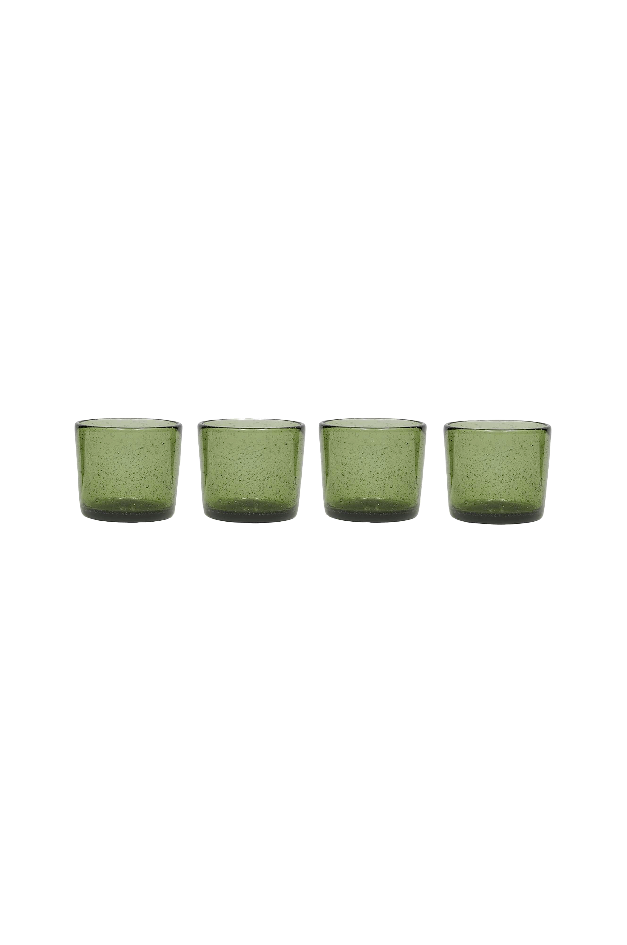 kuki glassene i en pakke med 4 stk. har boblesprøjt, der tilføjer et strejf af finurlighed til deres minimalistiske design. Den elegante form blander funktionalitet med tidløs æstetik, hvilket gør dem perfekte til enhver borddækning. Brug dem til hverdag eller til særlige lejligheder. Da de er mundblæste, vil hvert glas variere i størrelse, hvilket bidrager til deres unikke charme.
