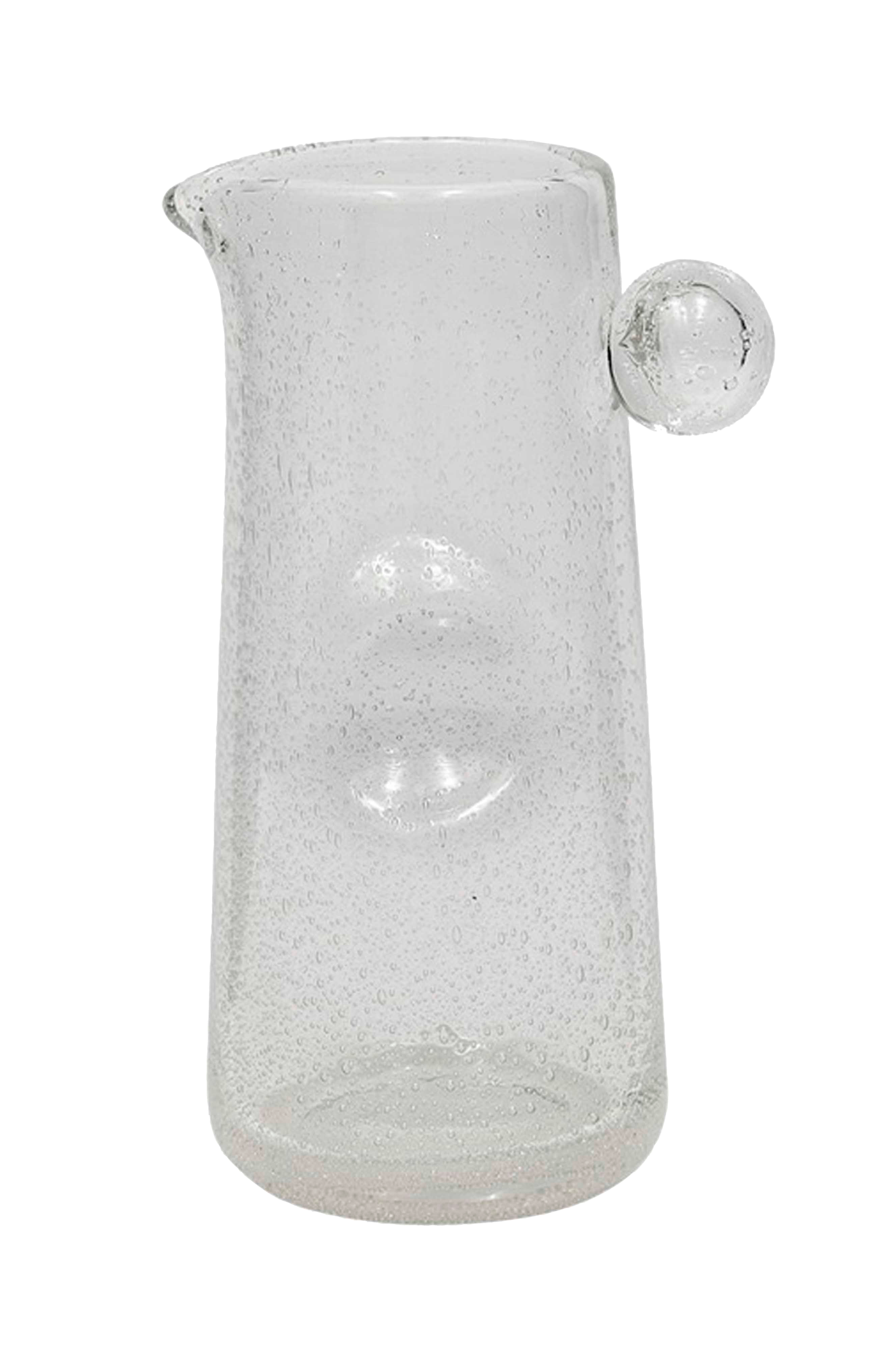 kuki kanden har boblesprøjt, der tilføjer et strejf af lune til det minimalistiske design. Den elegante form blander funktionalitet med tidløs æstetik, hvilket gør den perfekt til enhver borddækning. Brug den til hverdag eller til særlige lejligheder. Da den er mundblæst, vil hver kande variere i størrelse, hvilket bidrager til dens unikke charme.