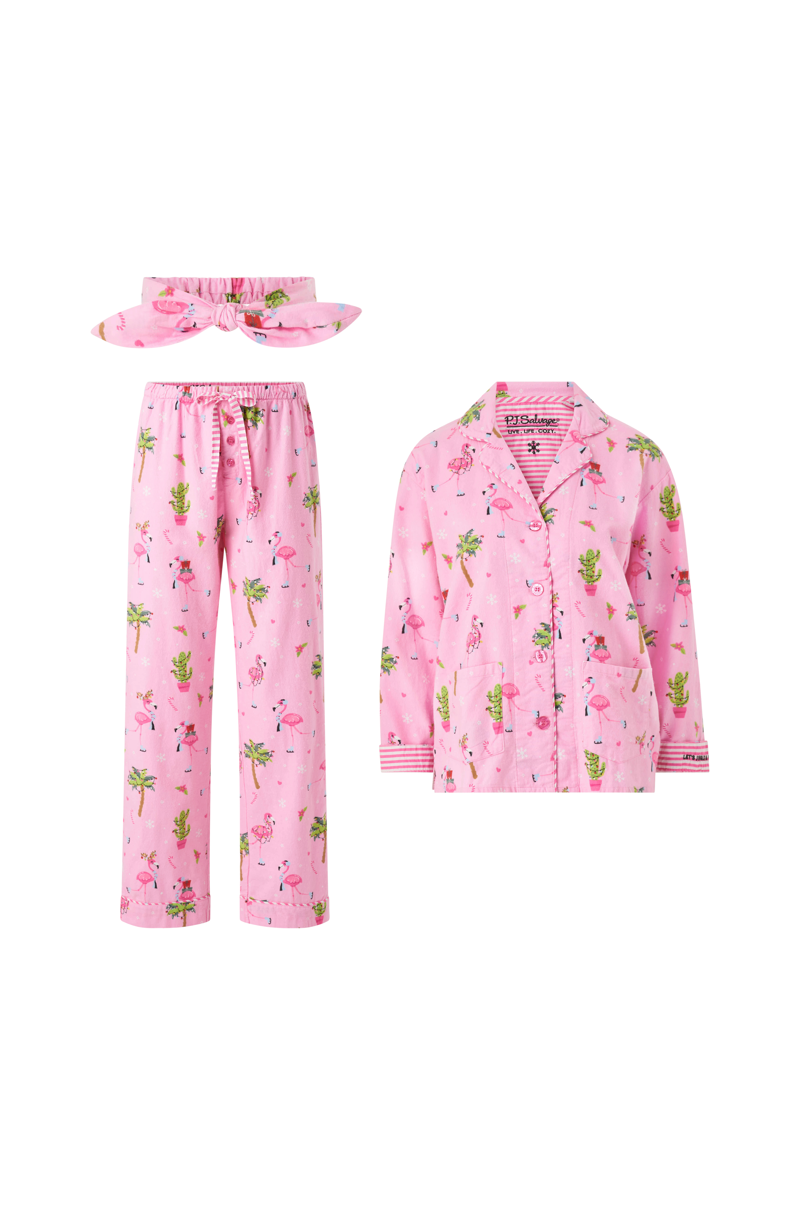 • Pyjamassæt i blød, børstet Bomuldskvalitet med et printet mønster• Skjorte med v-hals og knaplukning• To lommer• Ventilation nede i siderne• Elastisk talje med træksnørre på bukserne