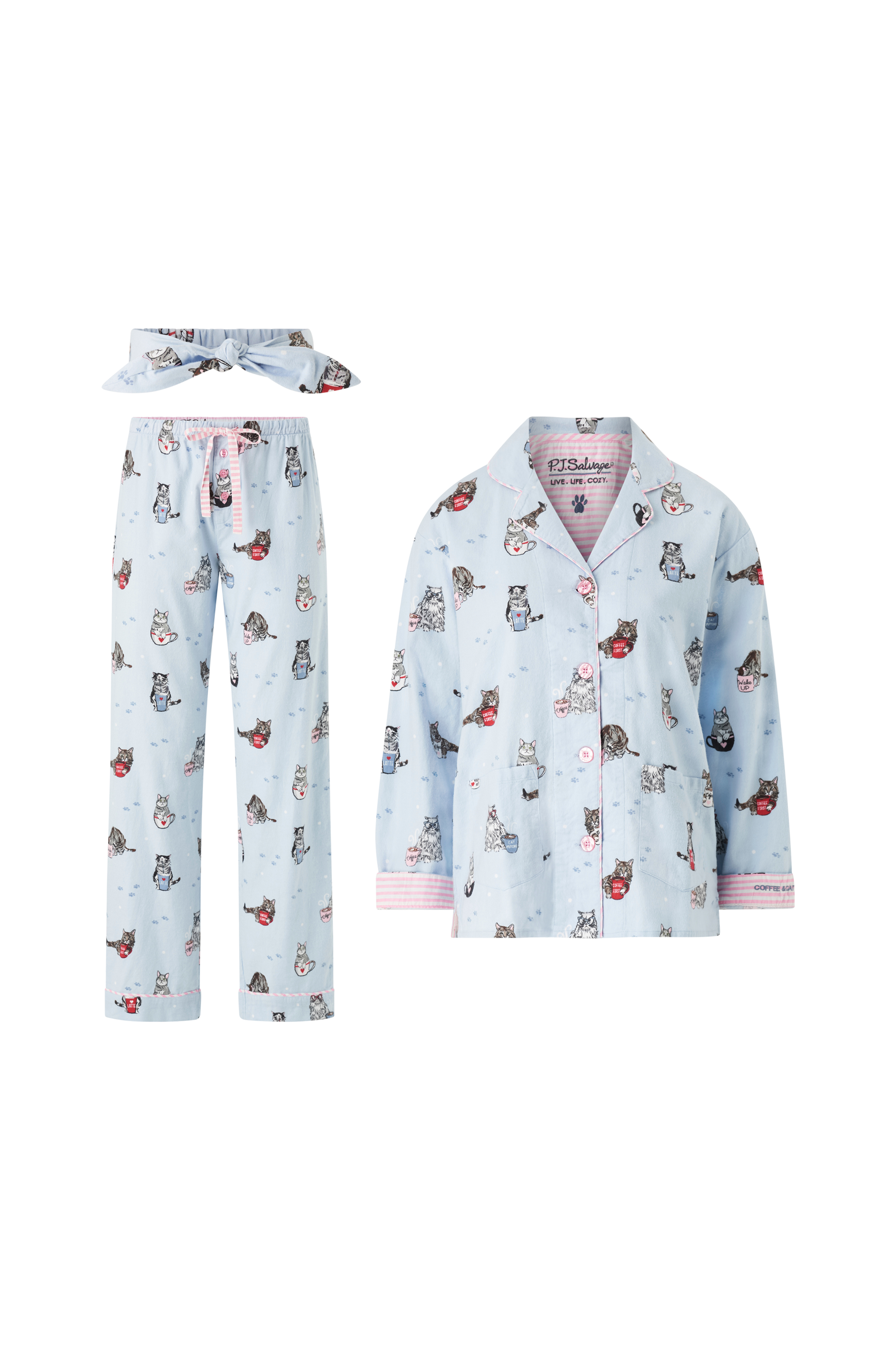 • Pyjamassæt i blød, børstet Bomuldskvalitet med et printet mønster• Skjorte med v-hals og knaplukning• To lommer• Ventilation nede i siderne• Elastisk talje med træksnørre på bukserne