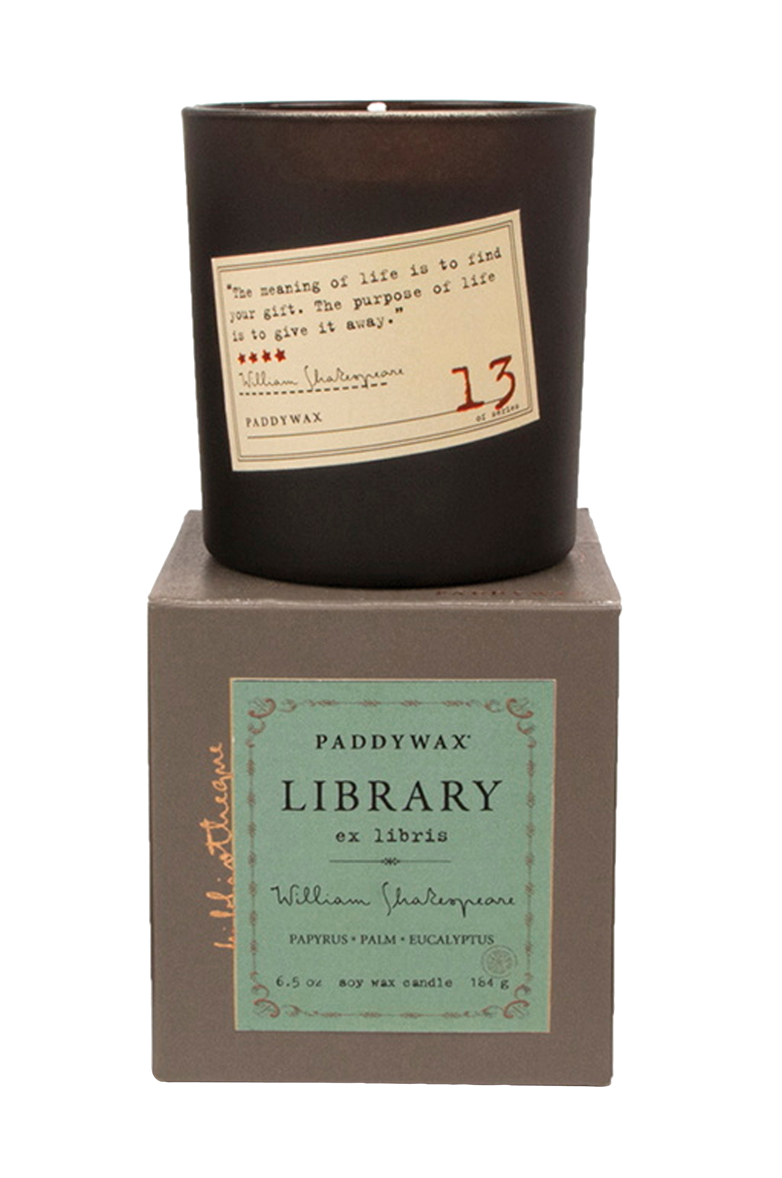 Luksuriøst duftlys fra paddywax, inspireret af william shakespeare! Lyset har et citat af William Shakespeare og leveres i en fin gaveæske. "Meningen med livet er at finde din gave. Formålet med livet er at give den væk." 184 g. Topnoter: eukalyptus, sød lime, kardemomme, agurk, melon. Mellemnoter: iris, viol, rav, plumeria, citrongræs, papyrus. Basisnoter: palme, sandeltræ, moskus, bambus, cedertræ.