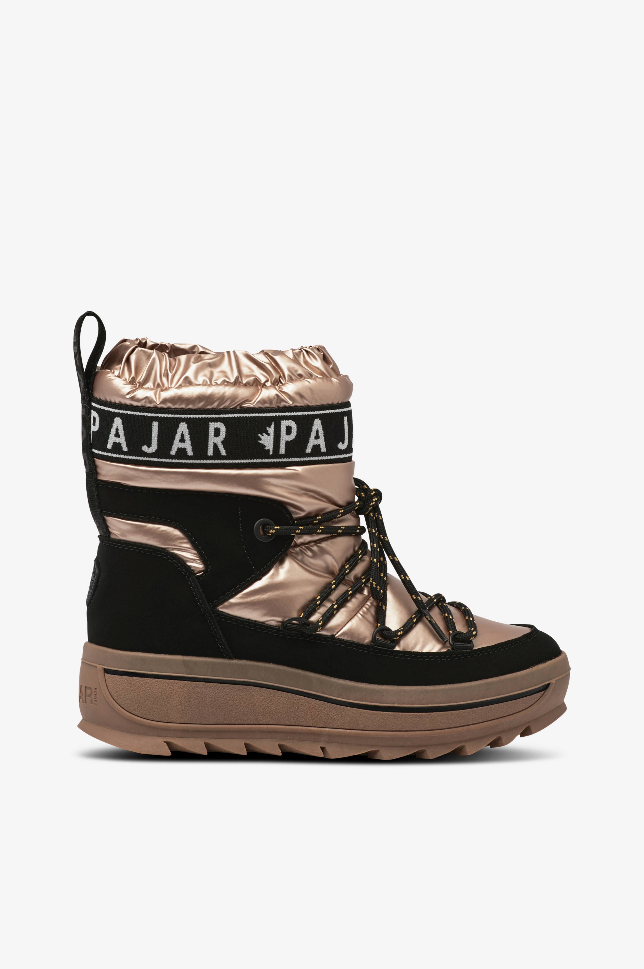 • Varmt forede, vandtætte Vinterstøvler i nylon og imiteret læder • Smudsafvisende materiale • Elastisk kant øverst på skaftet • Vævet trækstrop bag på skaftet • Dekorativ snøring • Varmt for i teddy • Udtagelig indersål i uldmiks • Skridsikker ydersål i gummi • Sålhøjde: 4 cm • Skafthøjde: 13 cm i str. 37