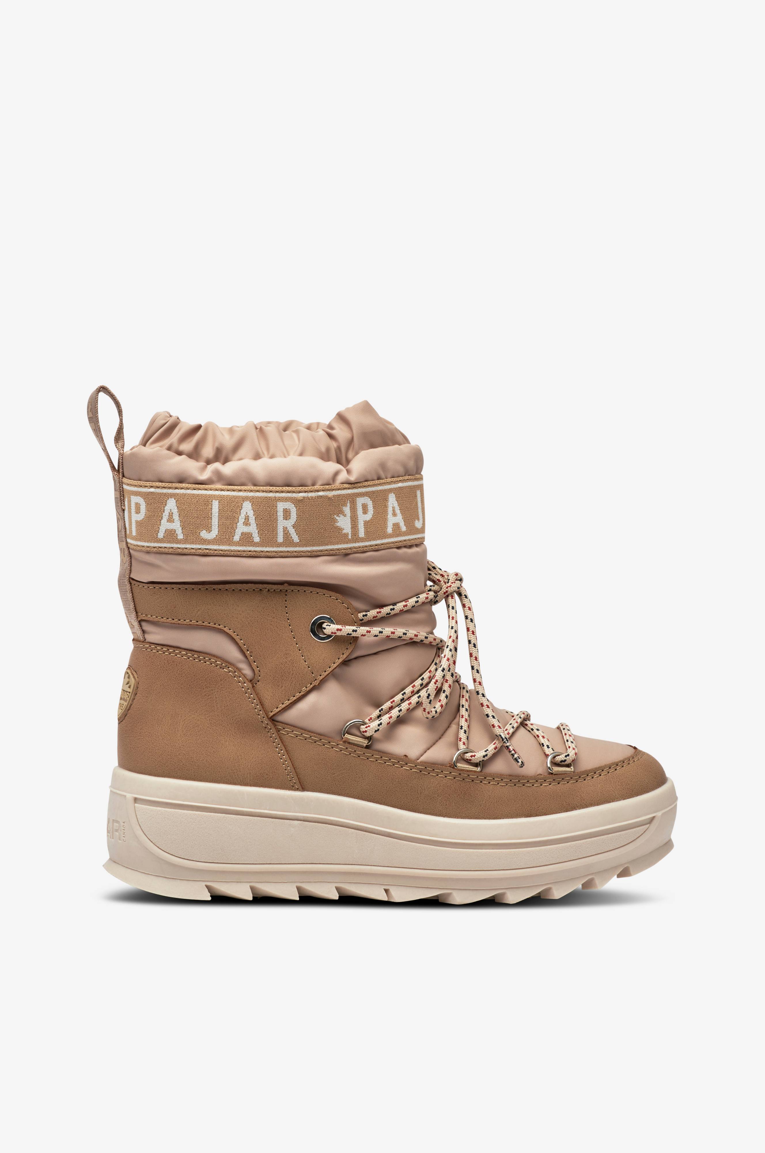 • Varmt forede, vandtætte Vinterstøvler i nylon og imiteret læder • Smudsafvisende materiale • Elastisk kant øverst på skaftet • Vævet trækstrop bag på skaftet • Dekorativ snøring • Varmt for i teddy • Udtagelig indersål i uldmiks • Skridsikker ydersål i gummi • Sålhøjde: 4 cm • Skafthøjde: 13 cm i str. 37