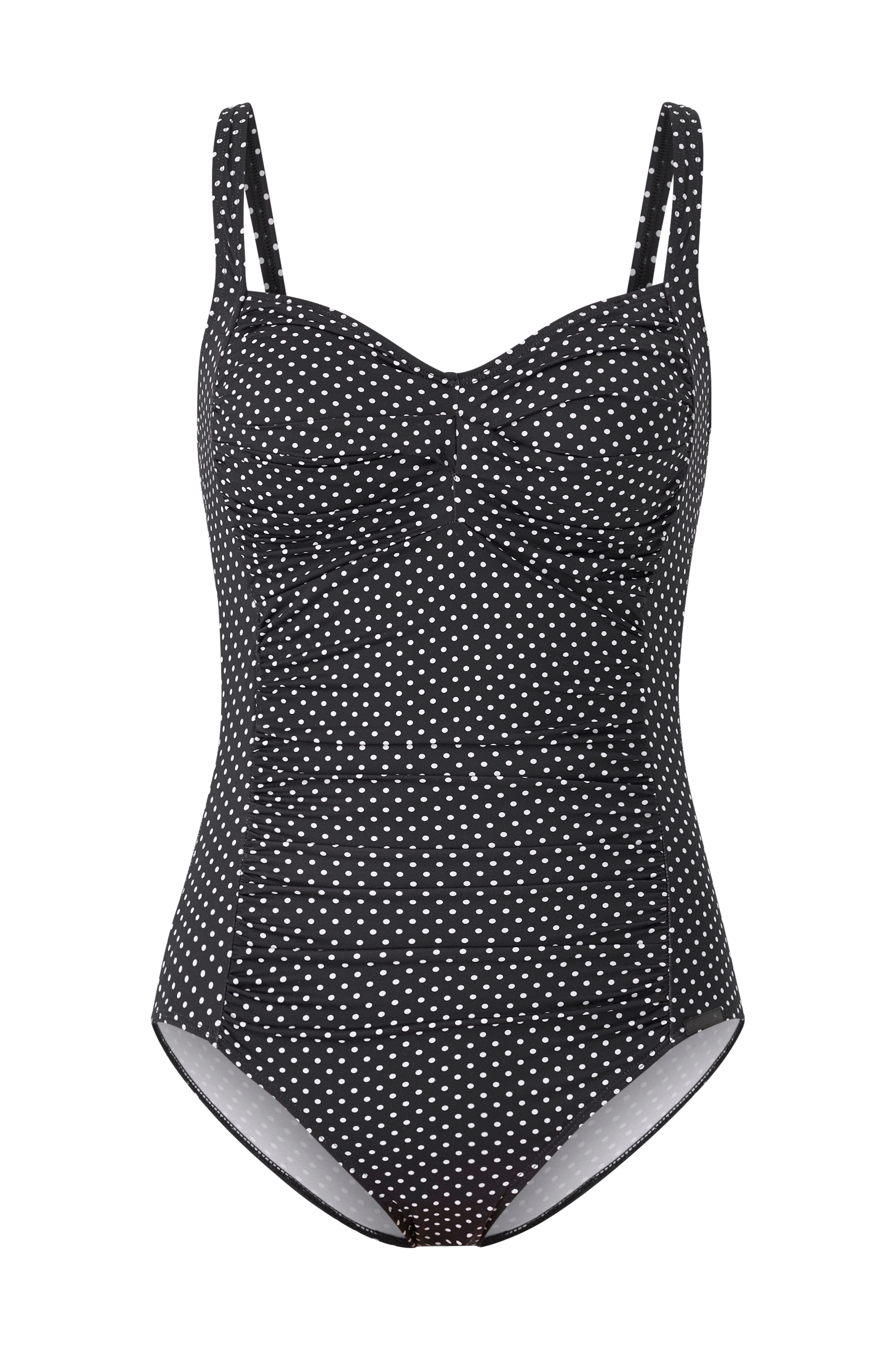 Badedragt med dekorativ drapering foran og læg ved brystet. Regulerbare skulderstropper og let vatterede skåle med lommer til indlæg. Foret foran og i skridtet.