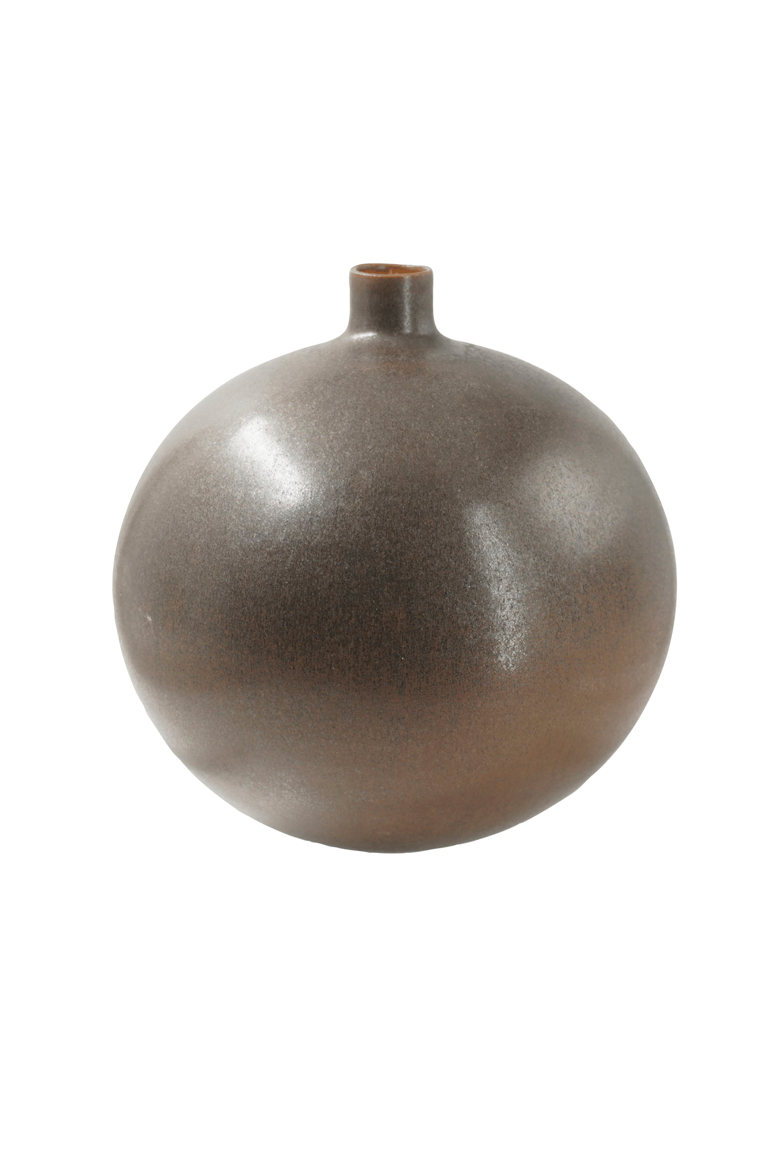 Globevase i stille effektfulde, matte og blanke glasurer. Vasen er fin med bare en blomst, kvist eller græsstrå i eller bare for sig selv. Vasen er inspireret af Hannah Paradis farfars samling af stentøjsminiaturer fra 50'erne i formen og af graffiti. Form: Hannah Paradis.