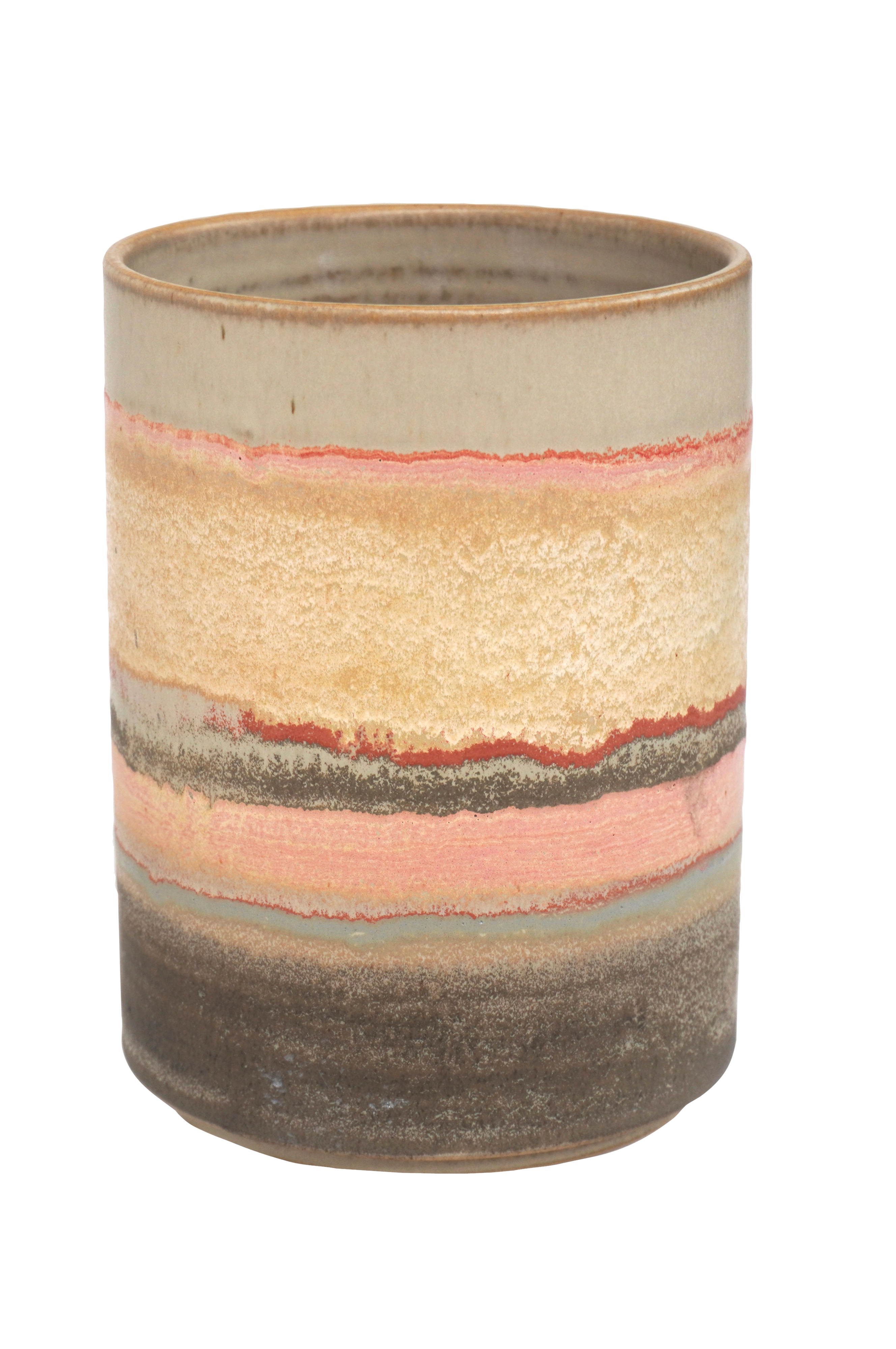 Vase som er håndmalet med diffuse og ujævne linjer. Hver vase får et unikt udtryk. Højde 19 cm. Diameter 14 cm.
