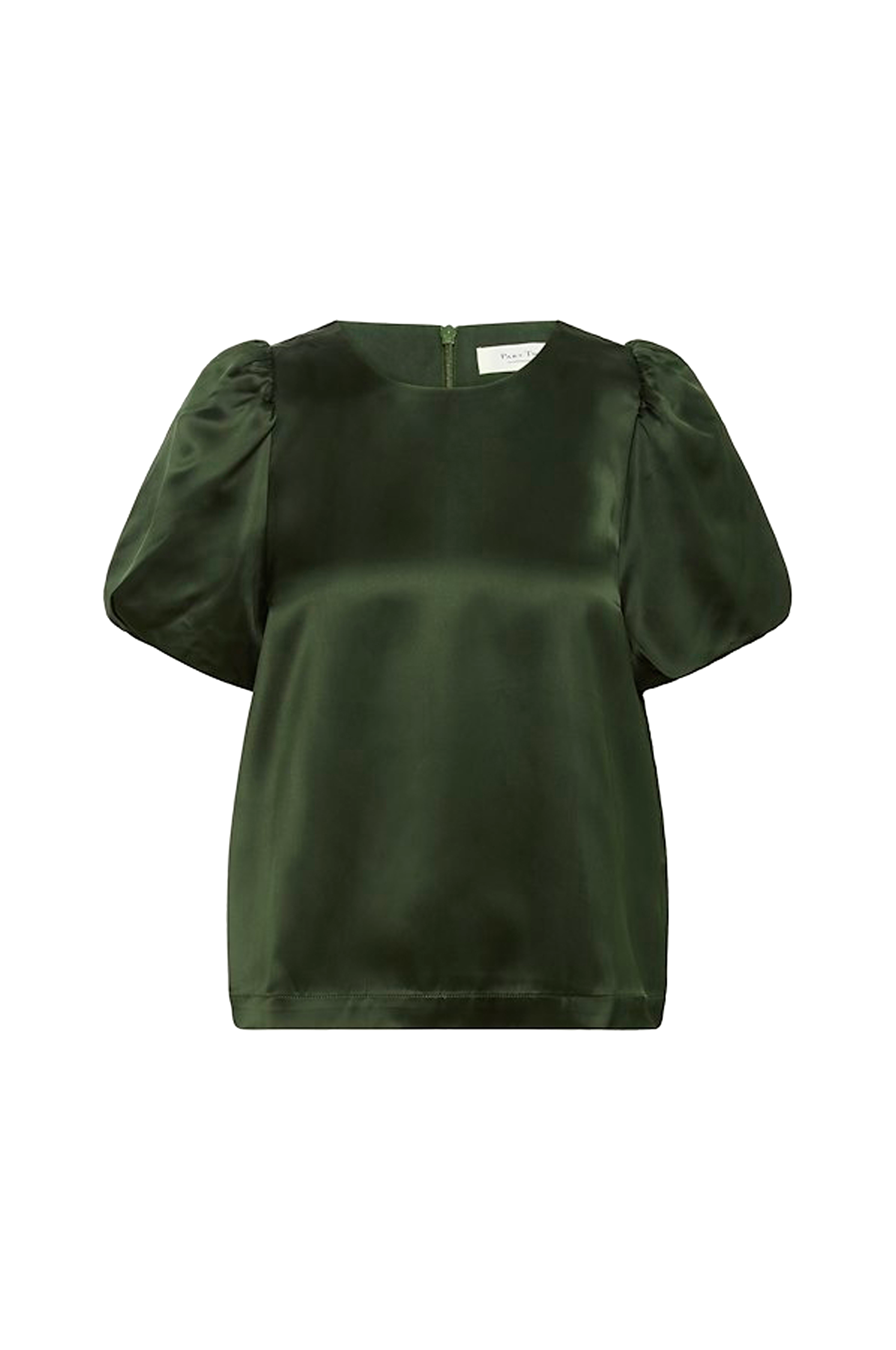 • Bluse i satin• Korte pufærmer• Skjult lynlås i ryggen