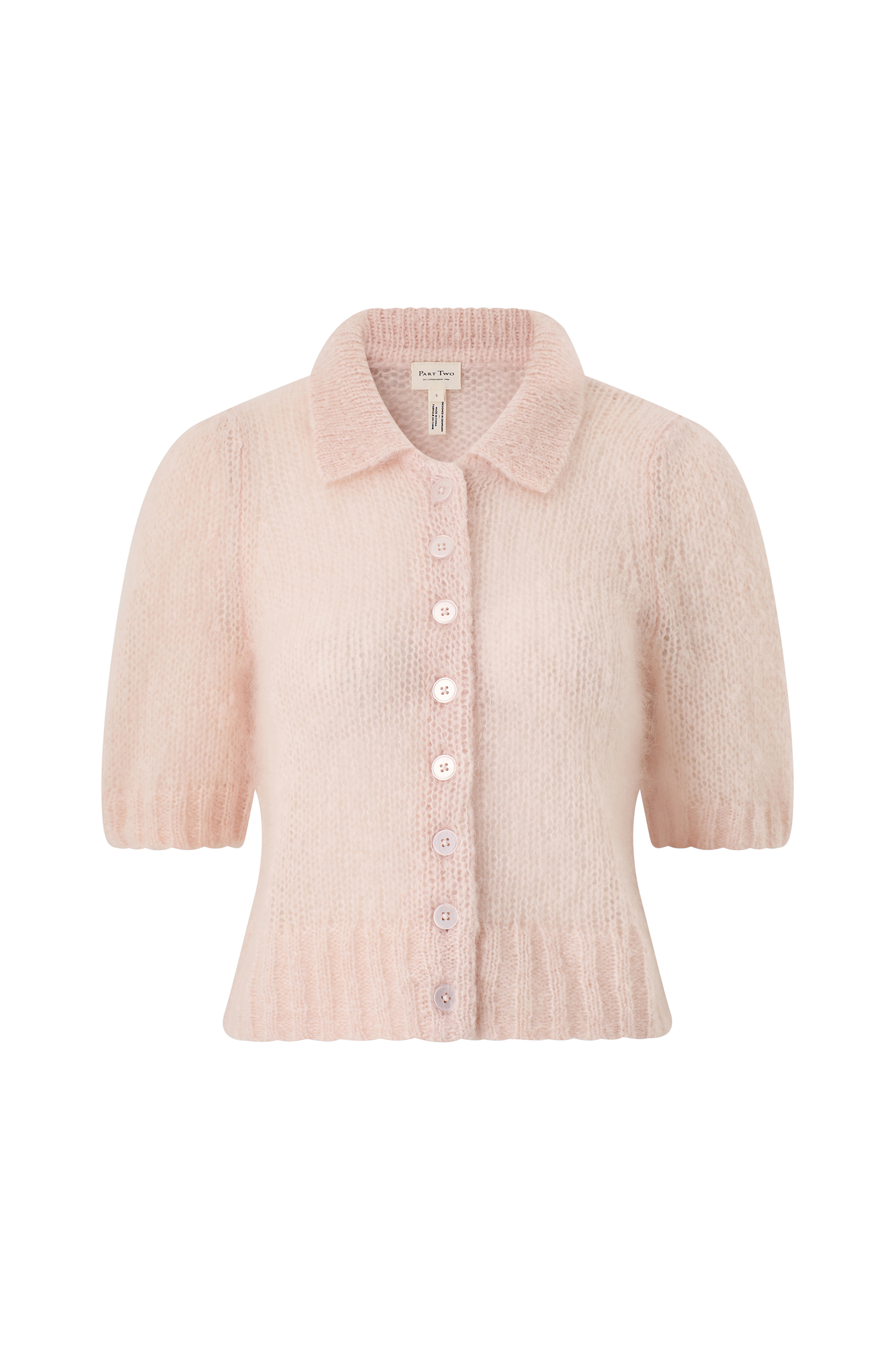 • Cardigan i mohairmiks• Krave• Knapper foran• Korte ærmer