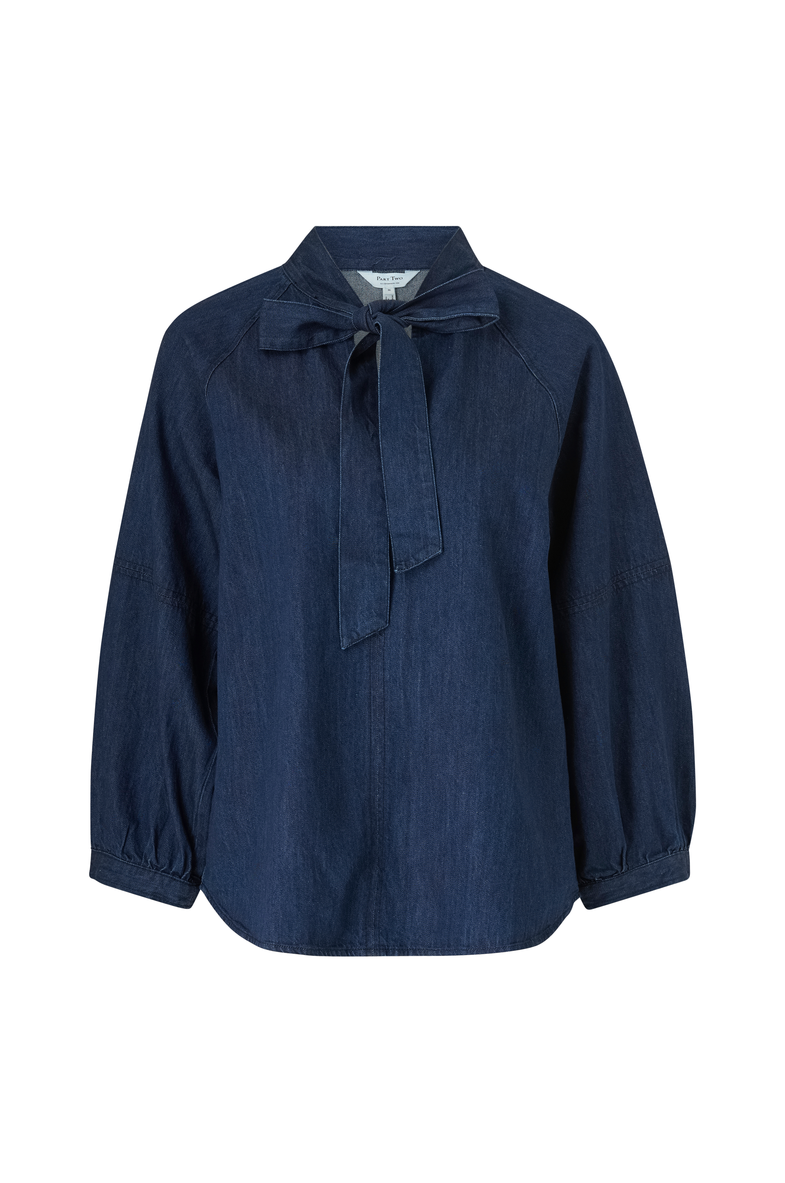 • Bluse i denim• Bindebånd på udskæringen• Slids foran• Lange raglanærmer• Afrundet søm