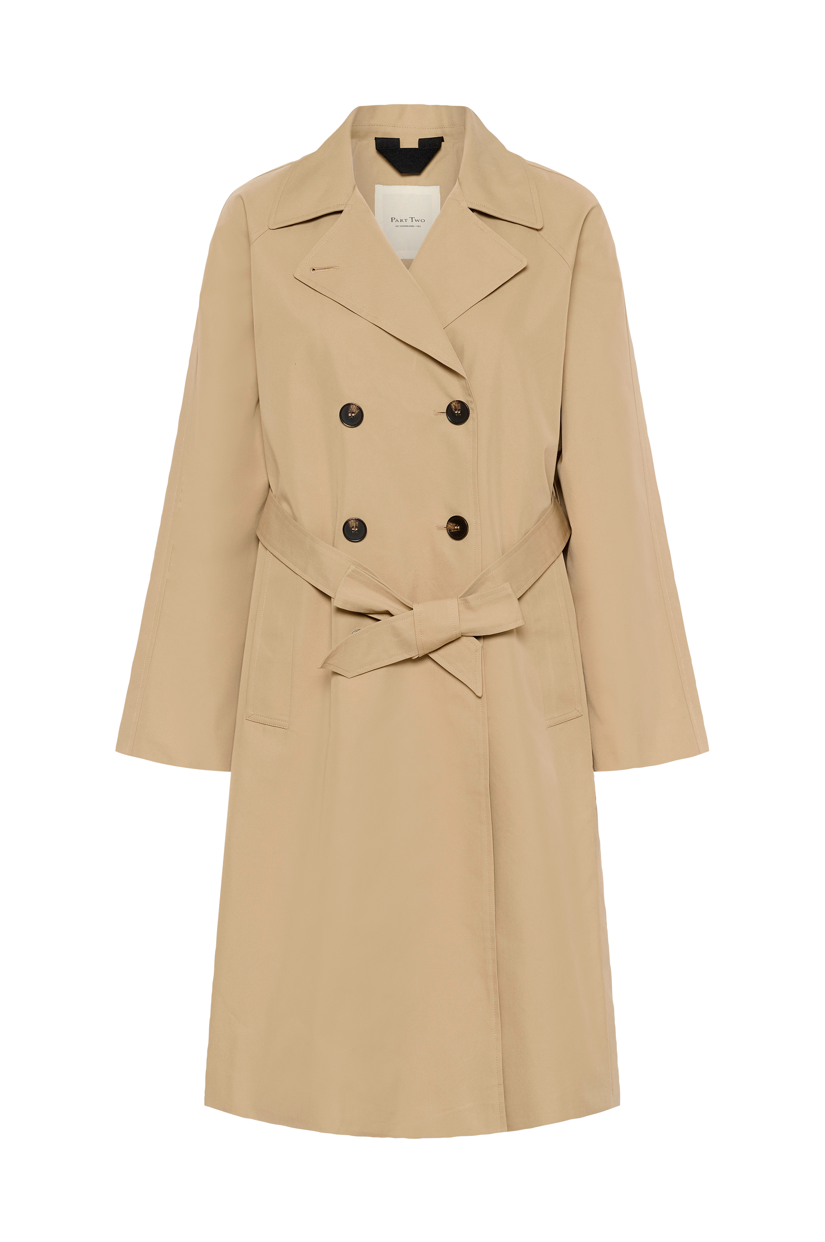 • Frakke med krave og revers• Lange ærmer• Taljebælte• Dobbelt knaplukning foran• Sidelommer• Slids nede bagved• Længde: 105 cm i størrelse 36