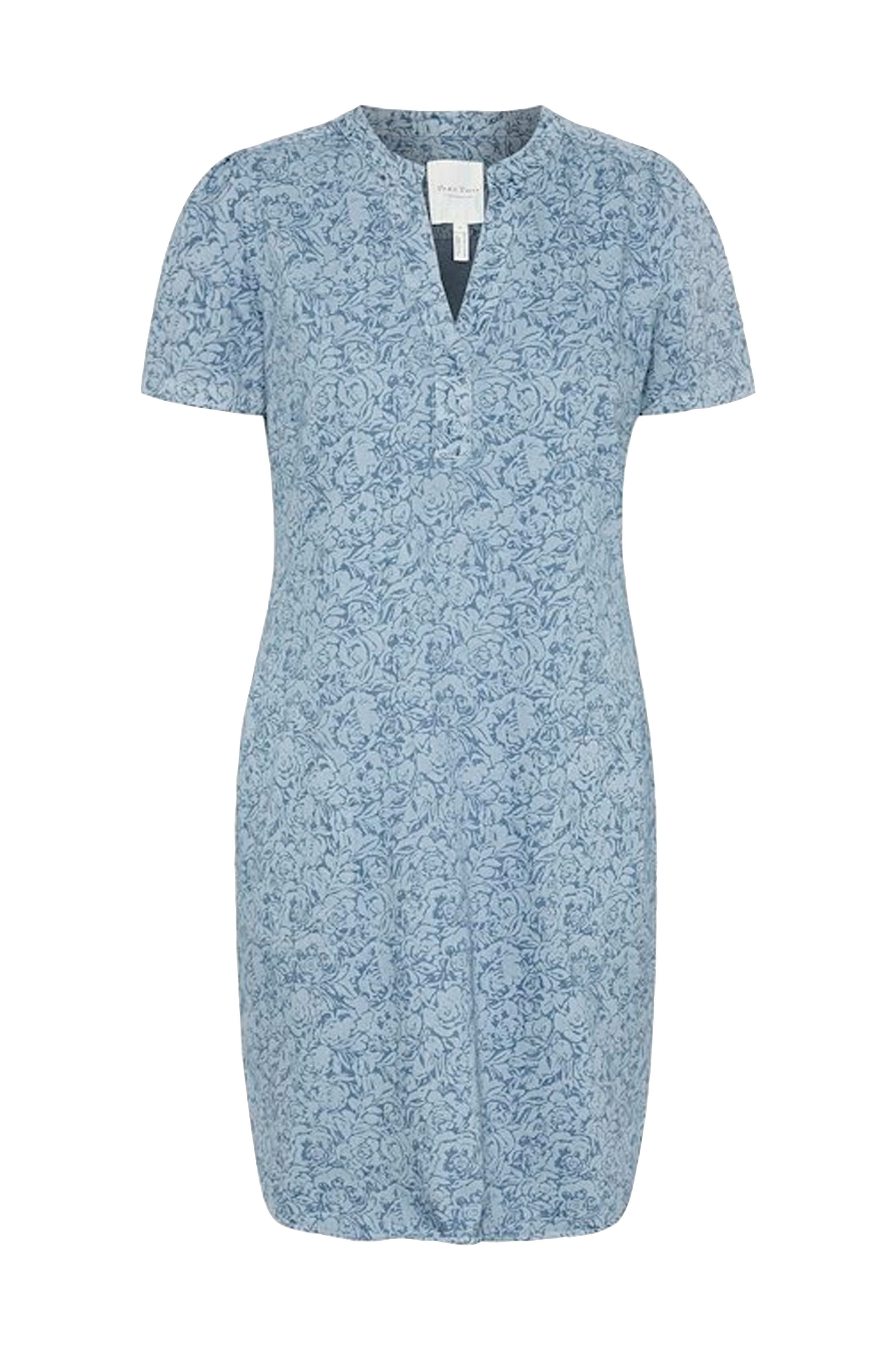 • Figurformede model i denim med printet blomstermønster• Rund hals med ventilation foran• Kort ballonærme• Sidelommer• Afrundet søm• Længde: 97 cm i størrelse 36