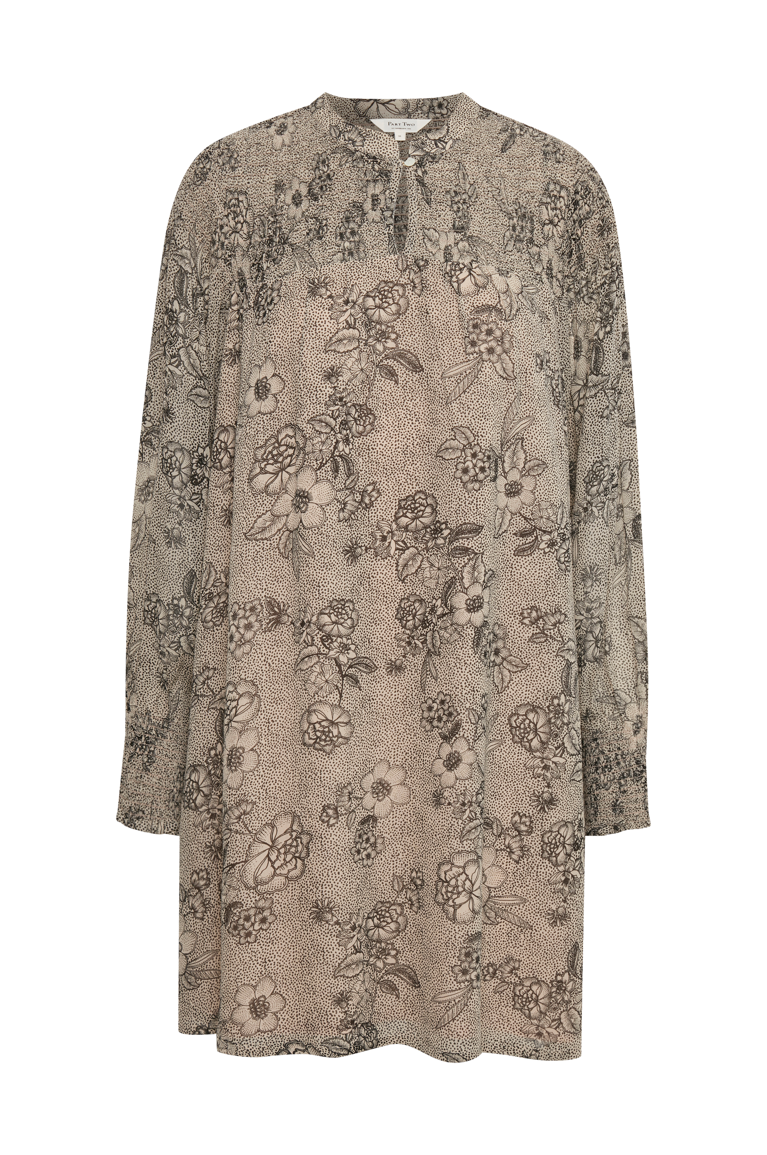 • Oversize model med svaj• Smock på toppen• Rund hals med en knap foran• Bredt ballonærme med smock ved manchetterne• Længde: 97 cm i størrelse 36