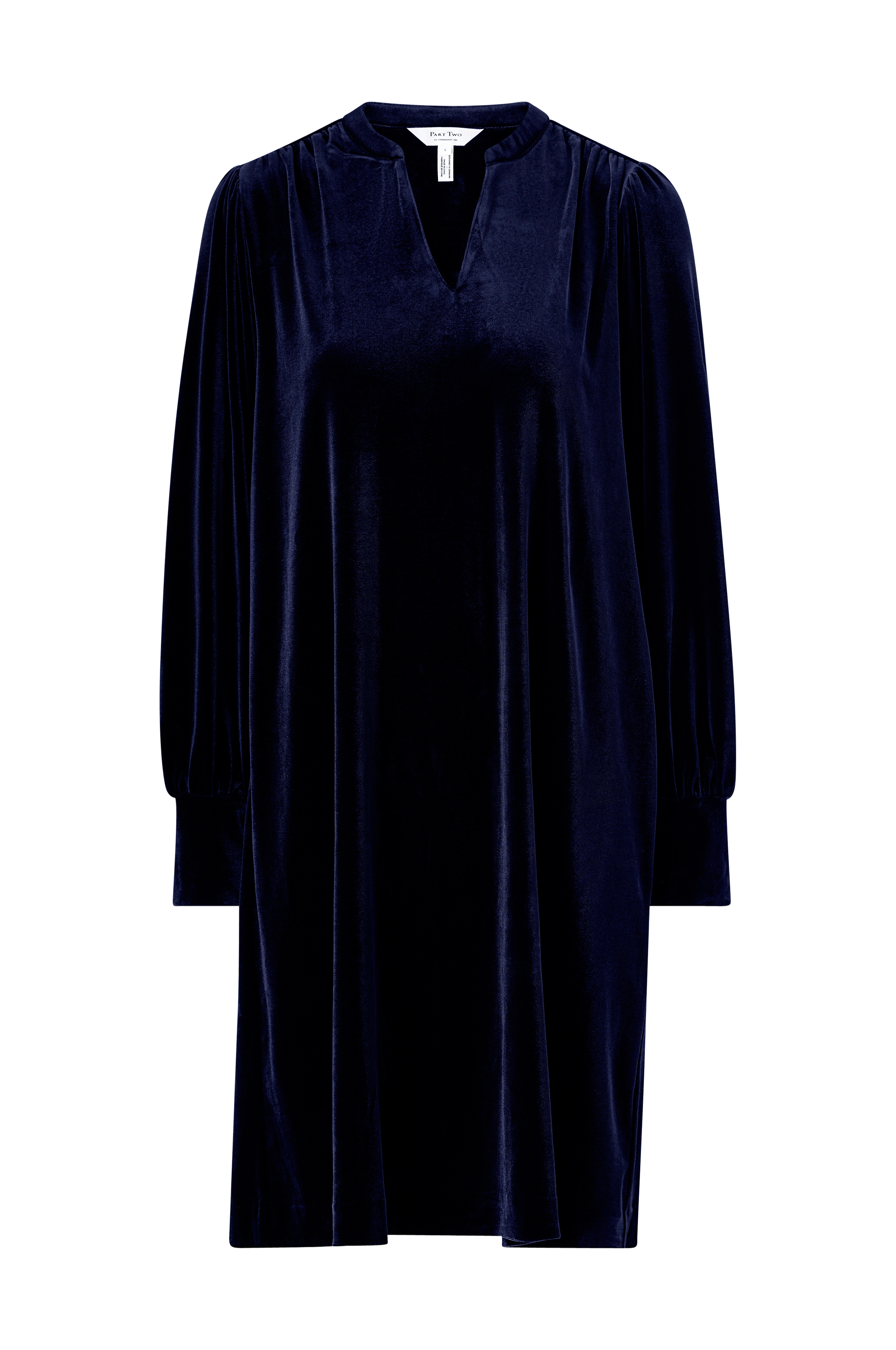 • Elastisk kjole i velour• Lange ballonærmer med elastiske manchetter ved manchetterne• Samling på skuldrene• Rund halsudskæring med slids foran• Længde: 100 cm i størrelse S