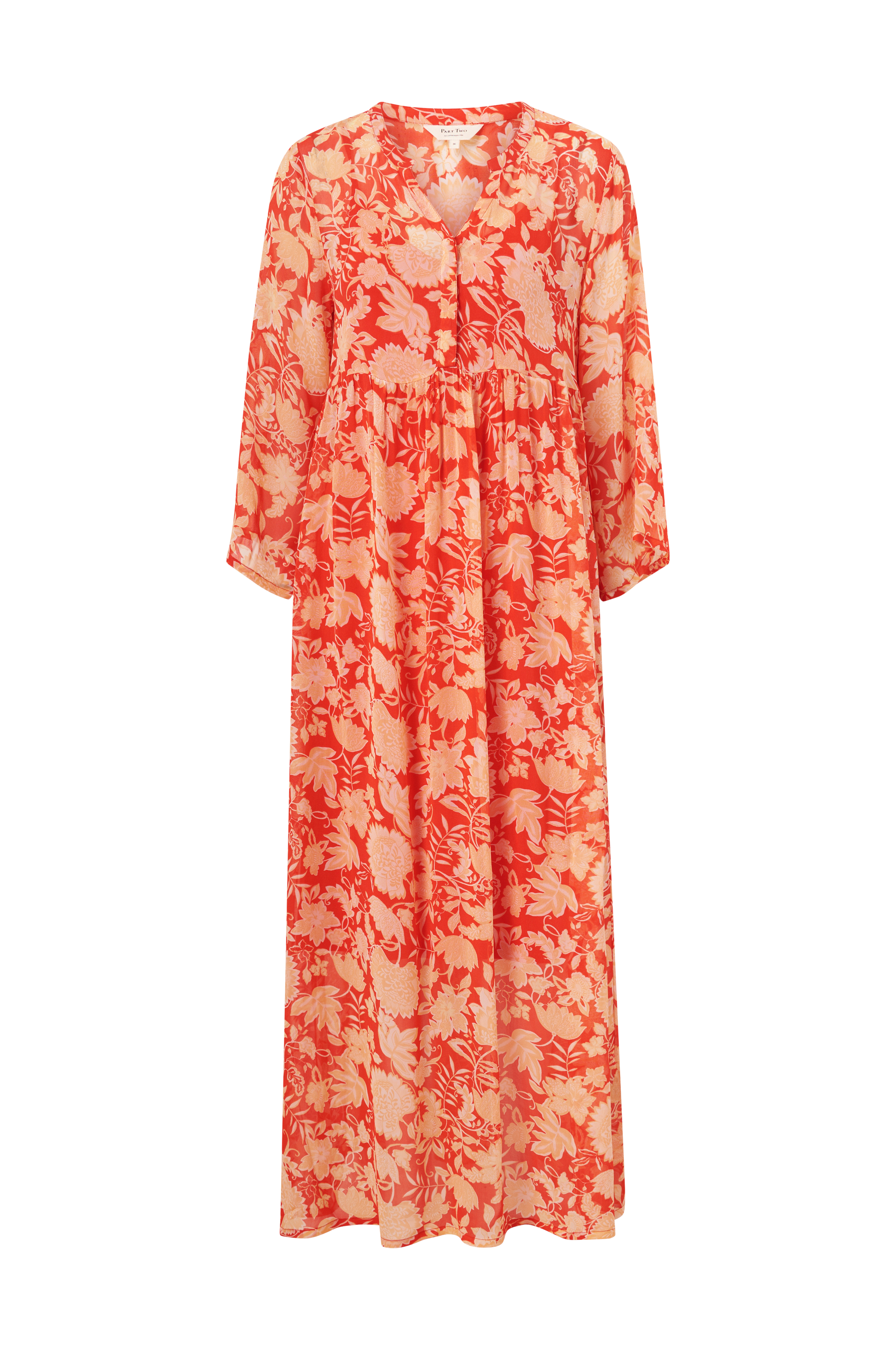 Luftig og lys kjole i smukke farver. Fint med både sneakers, sandaler og hæle. Sandt i størrelsen!