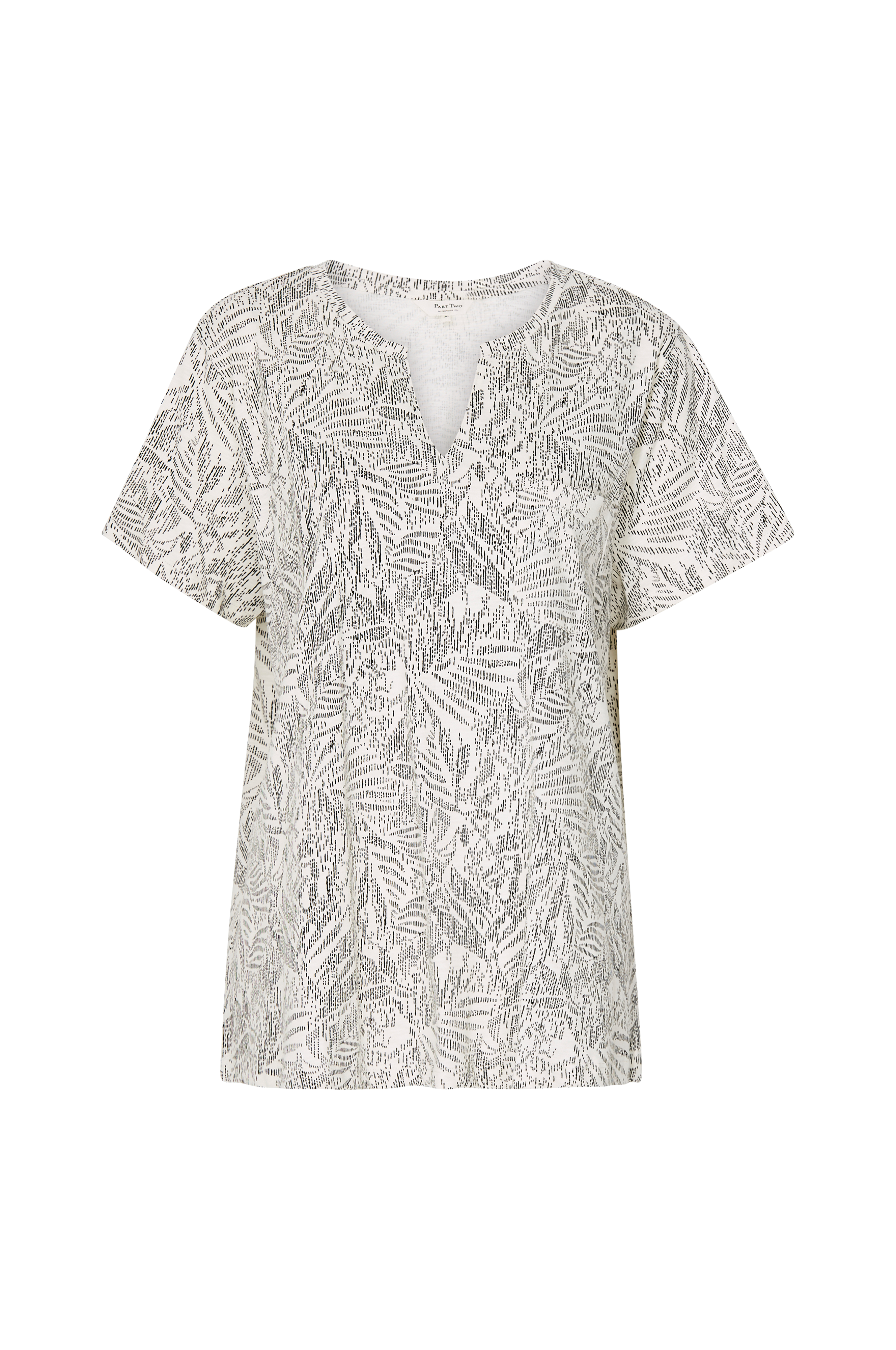 Kortærmet top i kraftig og blød bomuldsjersey. Rib i halsen med v-formet slids foran. Én brystlomme.