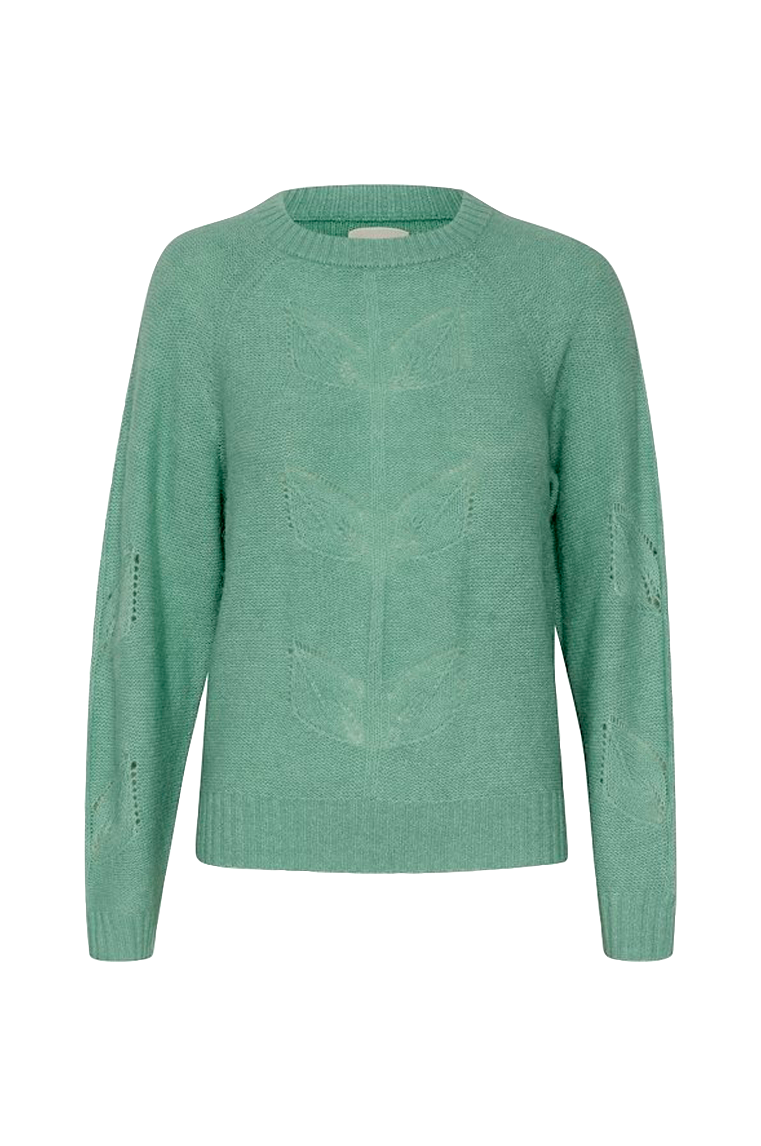 • Trøje i uldmiks• Hulmønster foran• Raglanærmer• Ribstrik ved manchetterne, nederst og i halsen