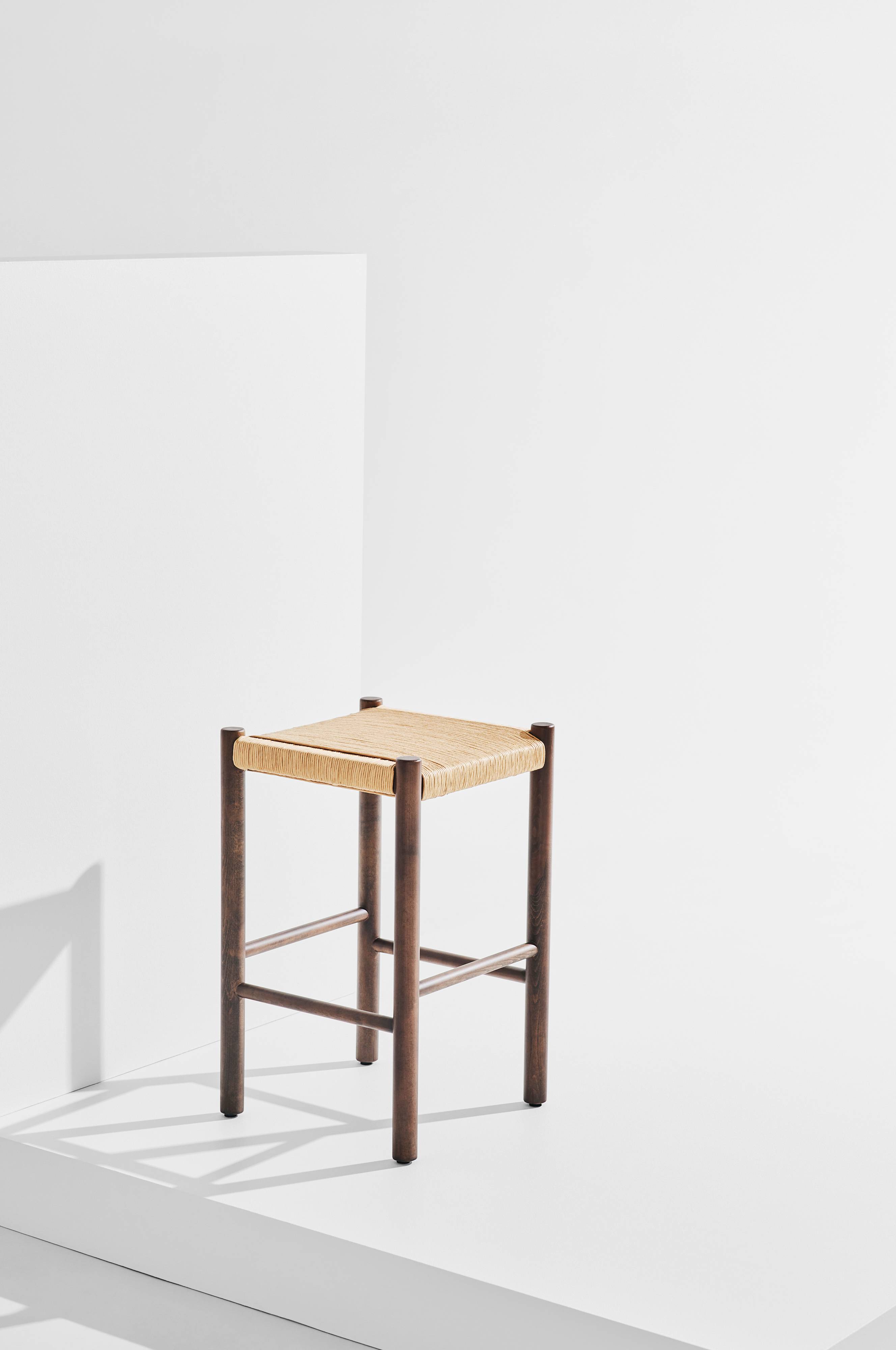 Klassisk udtryk, stilrent design og holdbare materialer gør Ines til en vinder. Barstolen i naturfarven er behandlet med en vandbaseret silkemat lak. Den sorte barstol er også lavet af eg, der er blevet lakeret med pigment, hvilket får årerne til at træde diskret frem. Den valnøddefarvede er lavet af bøg med en smuk valnøddebejdse. Alle farver har et sæde af snoet papirsnor. Sædet er pakket ind på en enkel og tiltalende måde. Ines er et møbel, der kan ændre stemningen i et helt rum.