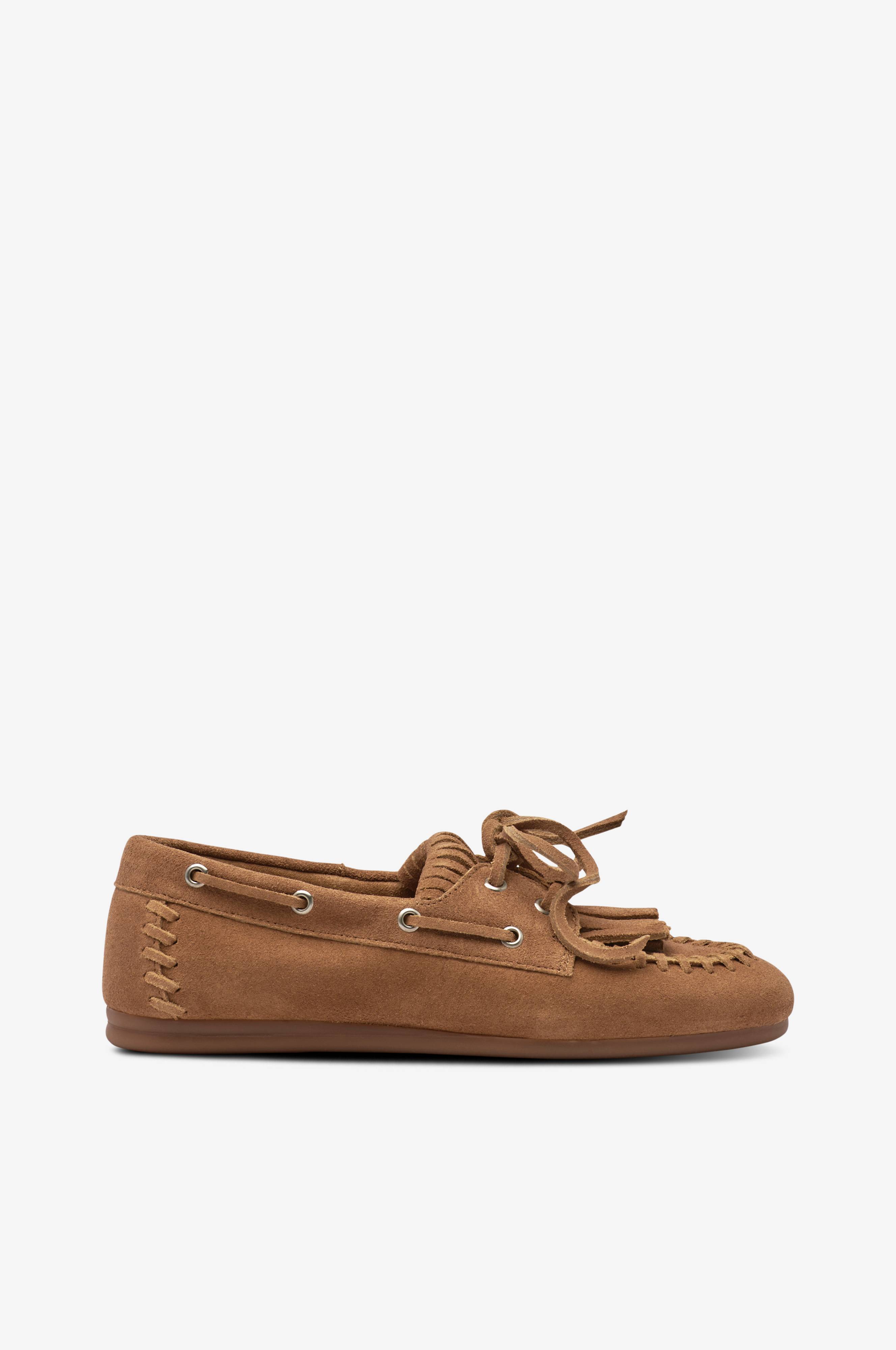 • Loafers i ruskind• Dekorative frynser over foden• Snøring i ruskind• Snørehuller med snørebånd hele vejen rundt• For i ruskind• Blød polstret indersål• Ydersål i gummi