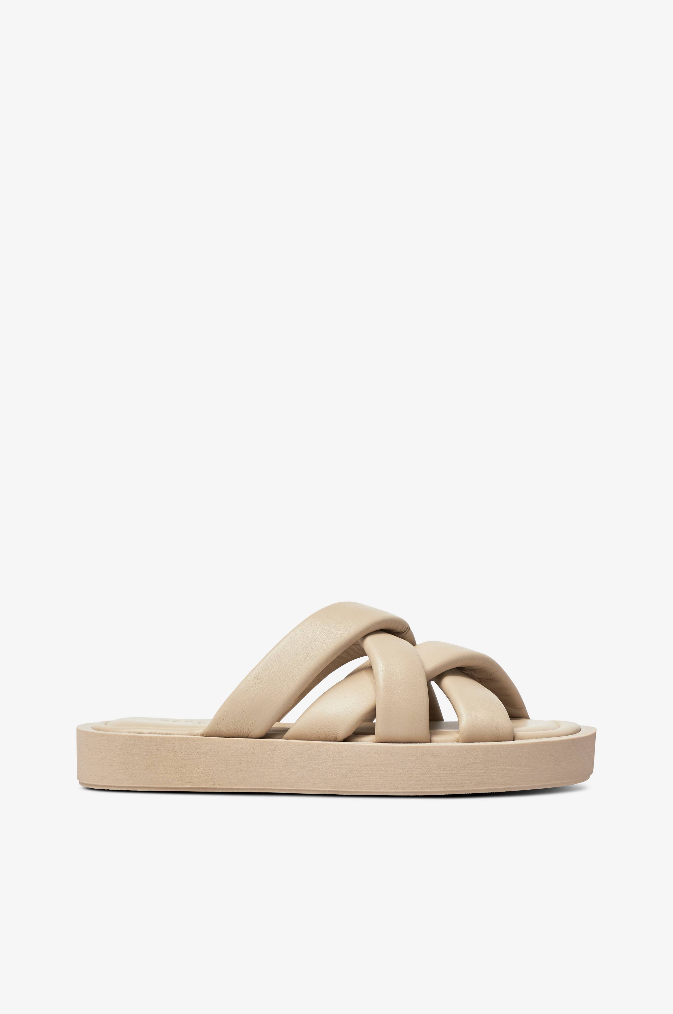 • Model i læder• Krydsende, forede remme• Blød, foret indersål• Sålhøjde: 2,5 cm